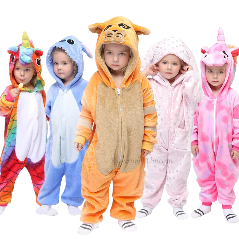 Детские фланелевые пижамы-кигуруми в виде единорога, детские зимние пижамы, комбинезоны для мальчиков и девочек, пижамные комплекты с тигром, пандой, стичем, животными, Пижама