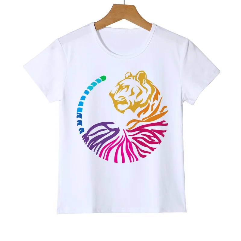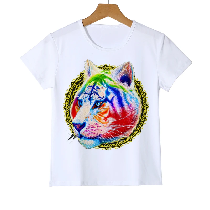Футболка 3d с круглым вырезом, футболка с принтом для девочек-подростков, одежда для мальчиков, футболка для маленьких девочек с тигровым леопардом, футболка, модные топы в летнем стиле, футболки