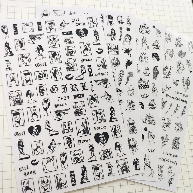 3D наклейка для ногтей с изображением сексуальной девушки, черные ц...