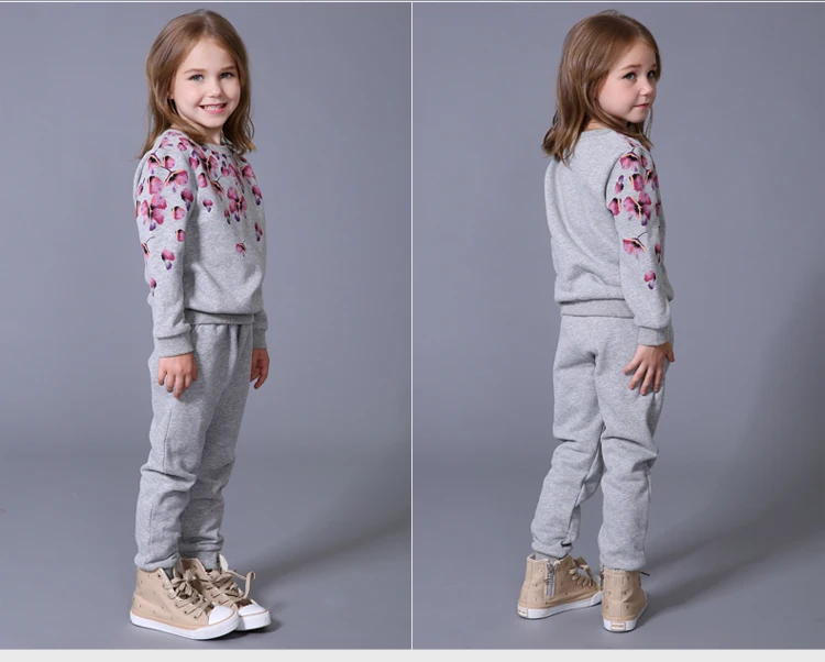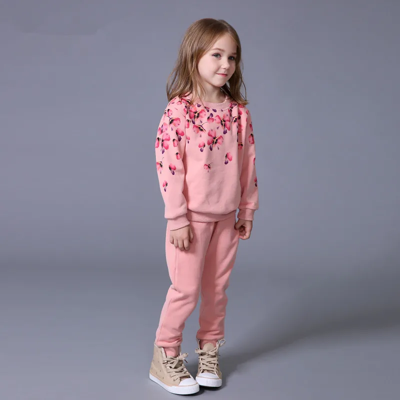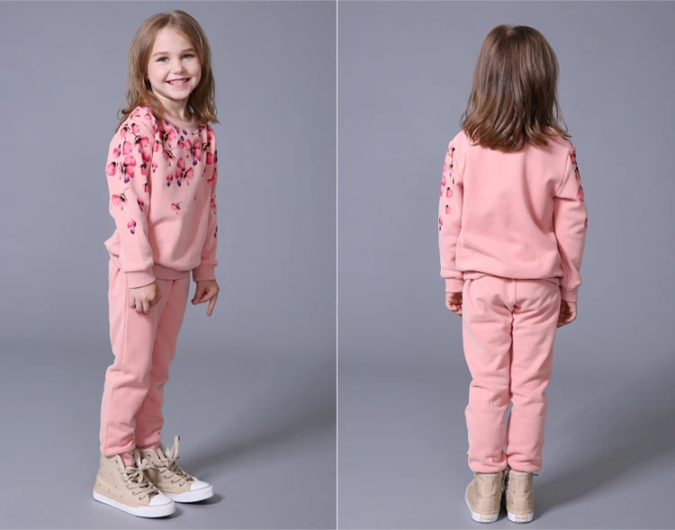 Весна-Осень Комплект одежды для девочек с рисунками цветов Комплект повседневный двухкомпонентный Спортивный костюм для девочки Тренировочные костюмы для детей
