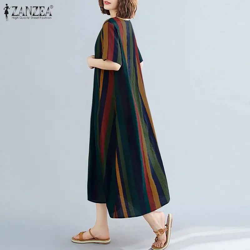 2021 ZANZEA женское винтажное платье средней длины с коротким рукав...