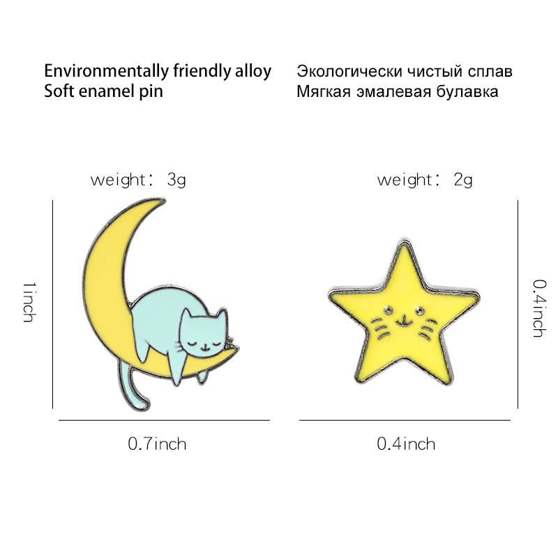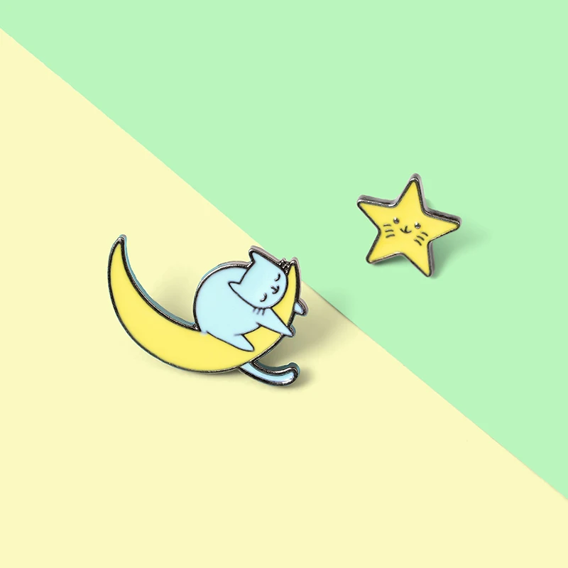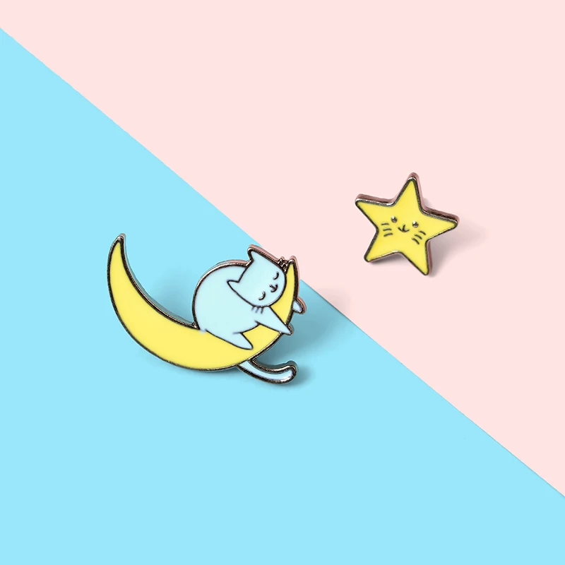 Озорная Звезда Луна Кот сладкий романтический Ленивый Стиль Женский значок на Лацкан шляпа Ювелирные изделия Подарки для любимого
