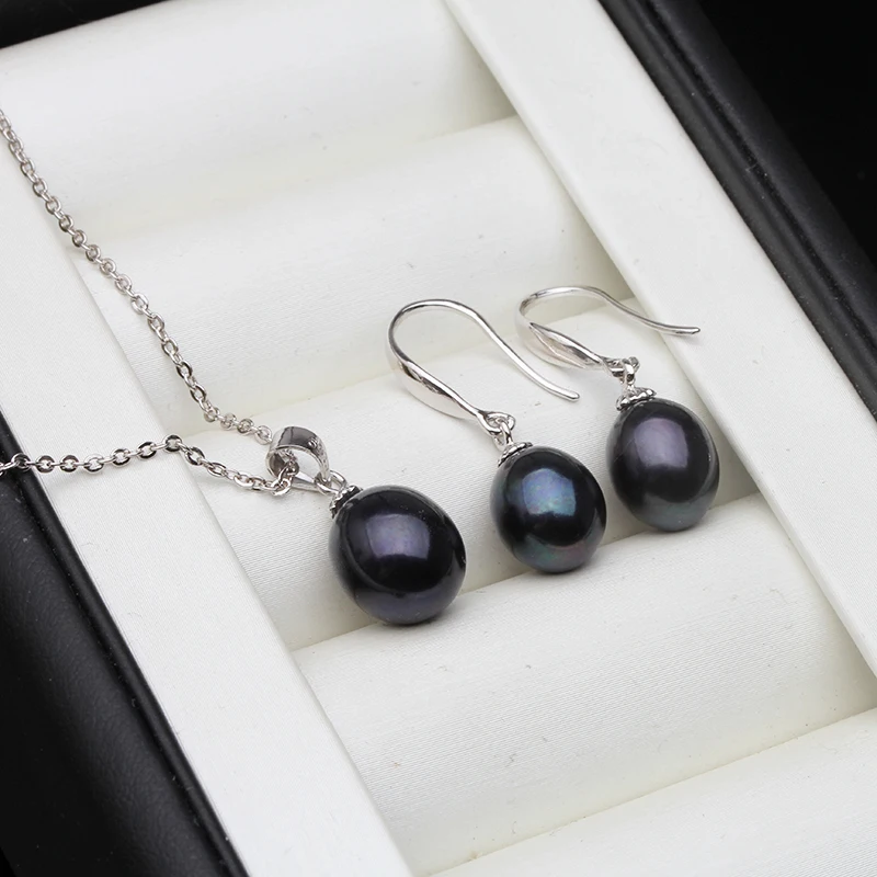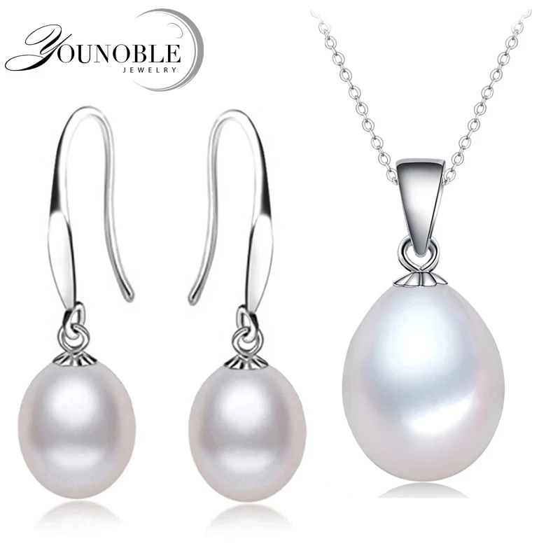 Настоящее натуральный жемчуг ювелирные наборы Серебро 925 женщин, пресноводный комплект жемчужных серег кулон ожерелье белый день рождения дочери лучший подарок
