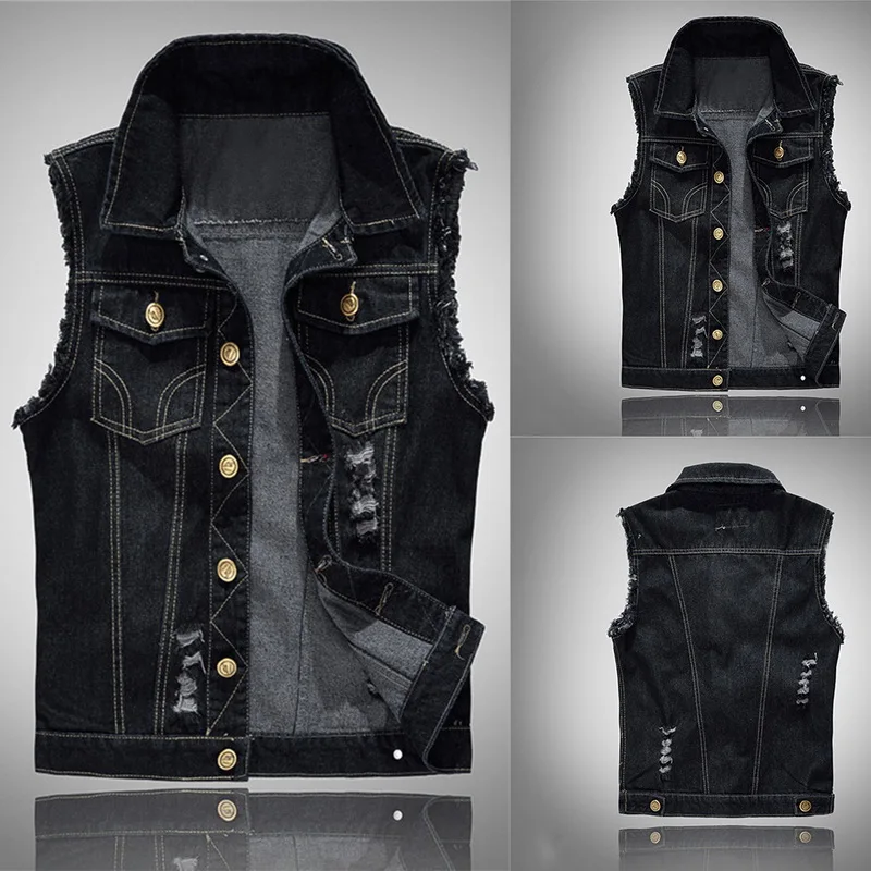 Хлопковые джинсы, жилетка без рукавов, мужская жилетка размера плюс 6XL, черная джинсовая жилетка, мужская Ковбойская жилетка для улицы, мужская жилетка