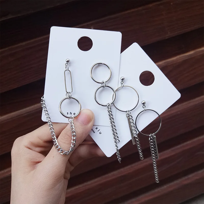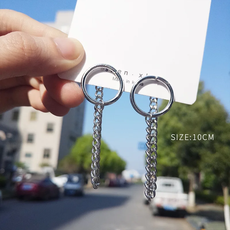 Асимметричные круглые длинные серьги-цепочки, женские, панк, эстетические, крестообразные, винтажные, хип-хоп, модные ювелирные изделия, серьги с металлическими кисточками
