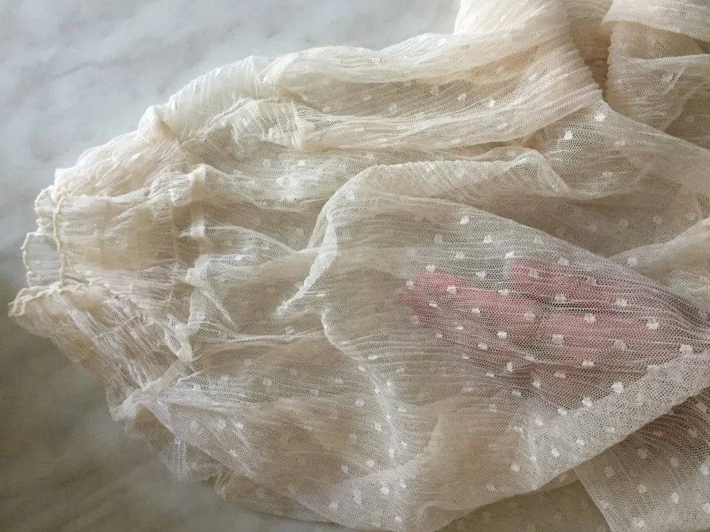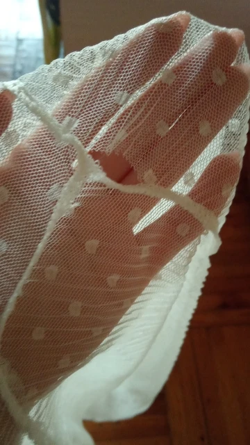 Очеень классная, думаю заказать и в белом цвете, нежная и тоненькая ткань, можно легко оставить затяжки и порвать. Но как она очаровательно сидит, ты сама будто становишься воздушной! Пришла в течении трёх недель, все отслеживалось! Советую к покупке)