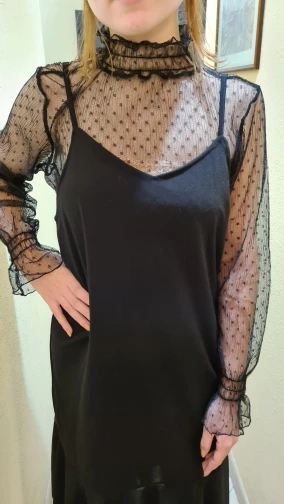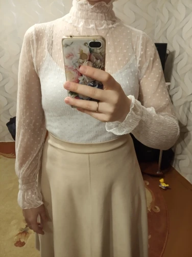 прозрачная и милая водолазочка. хорошо под сарафаны или платье , добавит изюминку и женственности