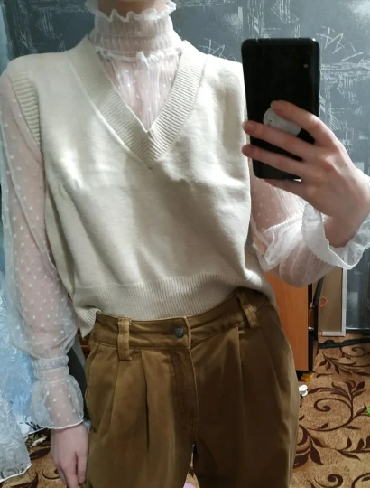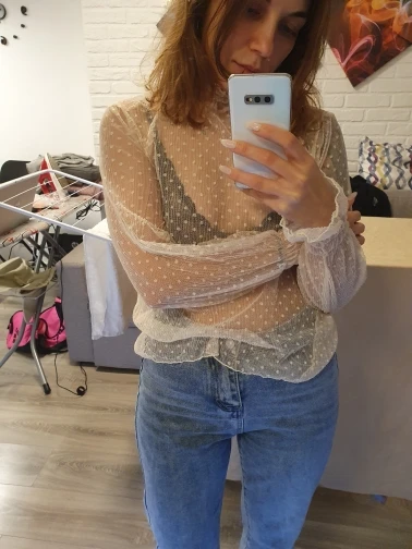 Блузка просто отпад! Очень милая вещица, тонкая, хорошо тянется, невероятно красиво смотрится.