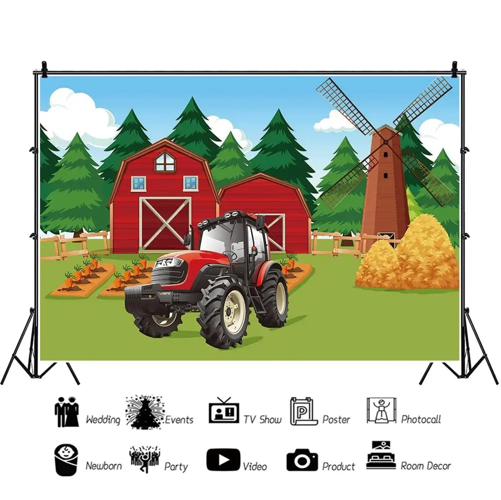 Виниловый фон для фотосъемки в фотостудии с изображением осенней фермы трактора мельницы