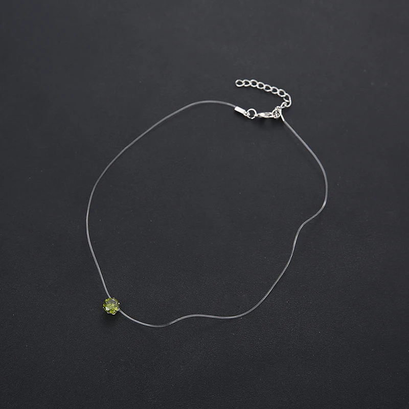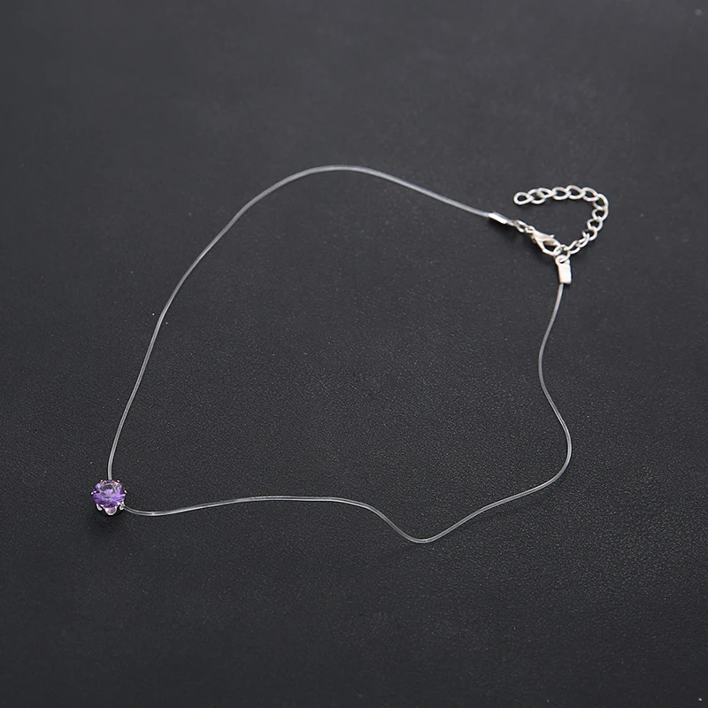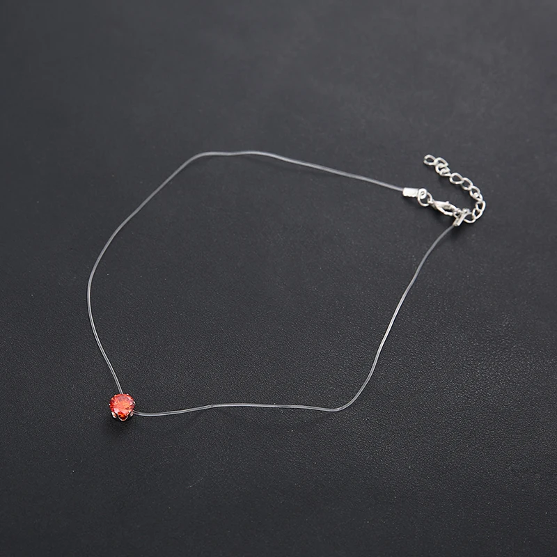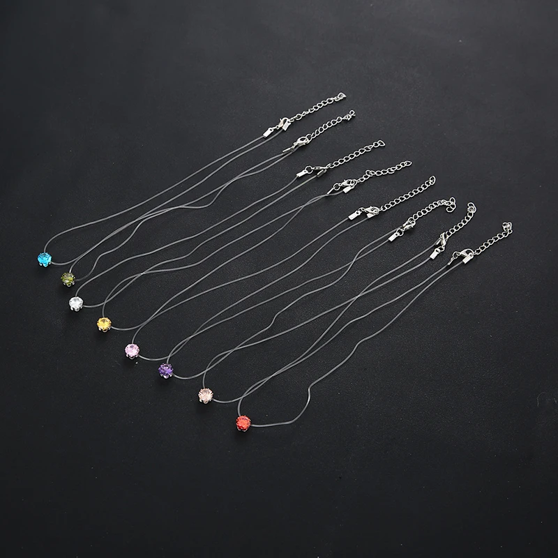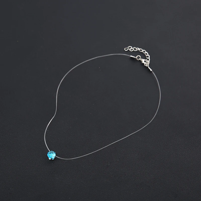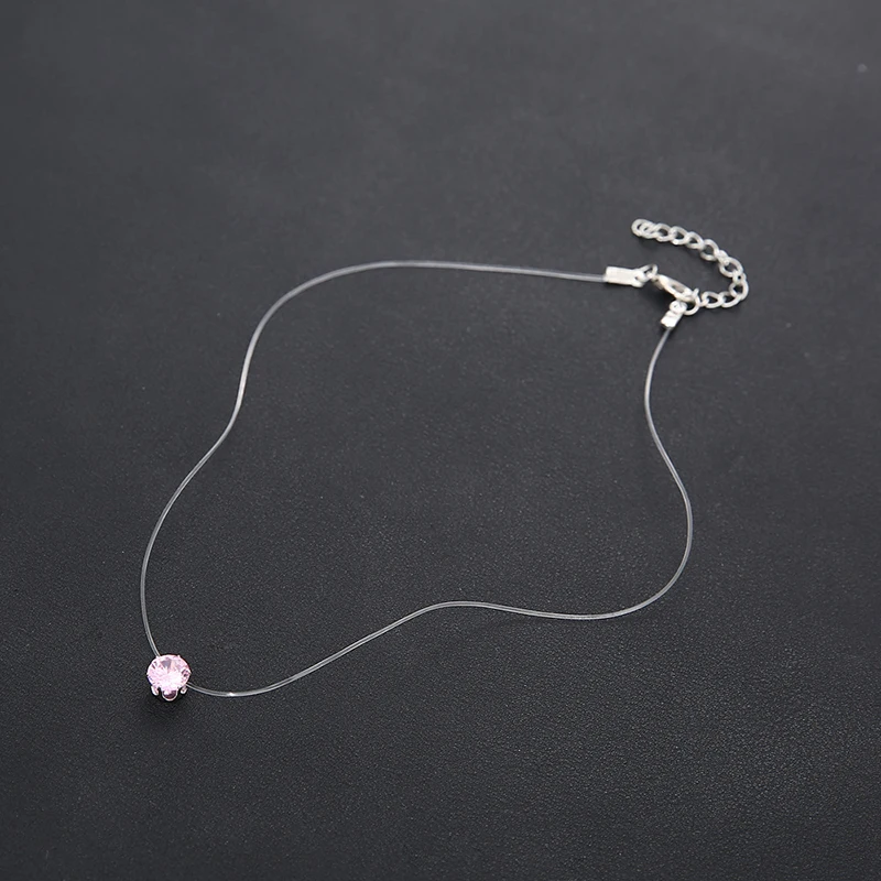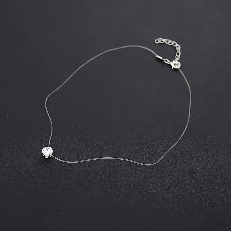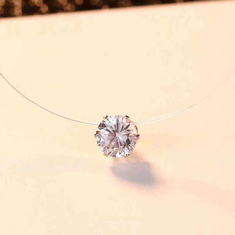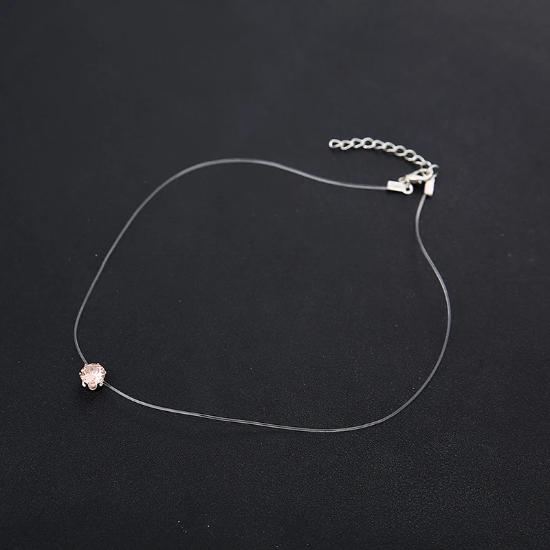 Чокер из прозрачной лески с подвеской Женский, модное невидимое ожерелье с кулоном из циркония, элегантное колье до ключиц, подарок для девушки и женщины