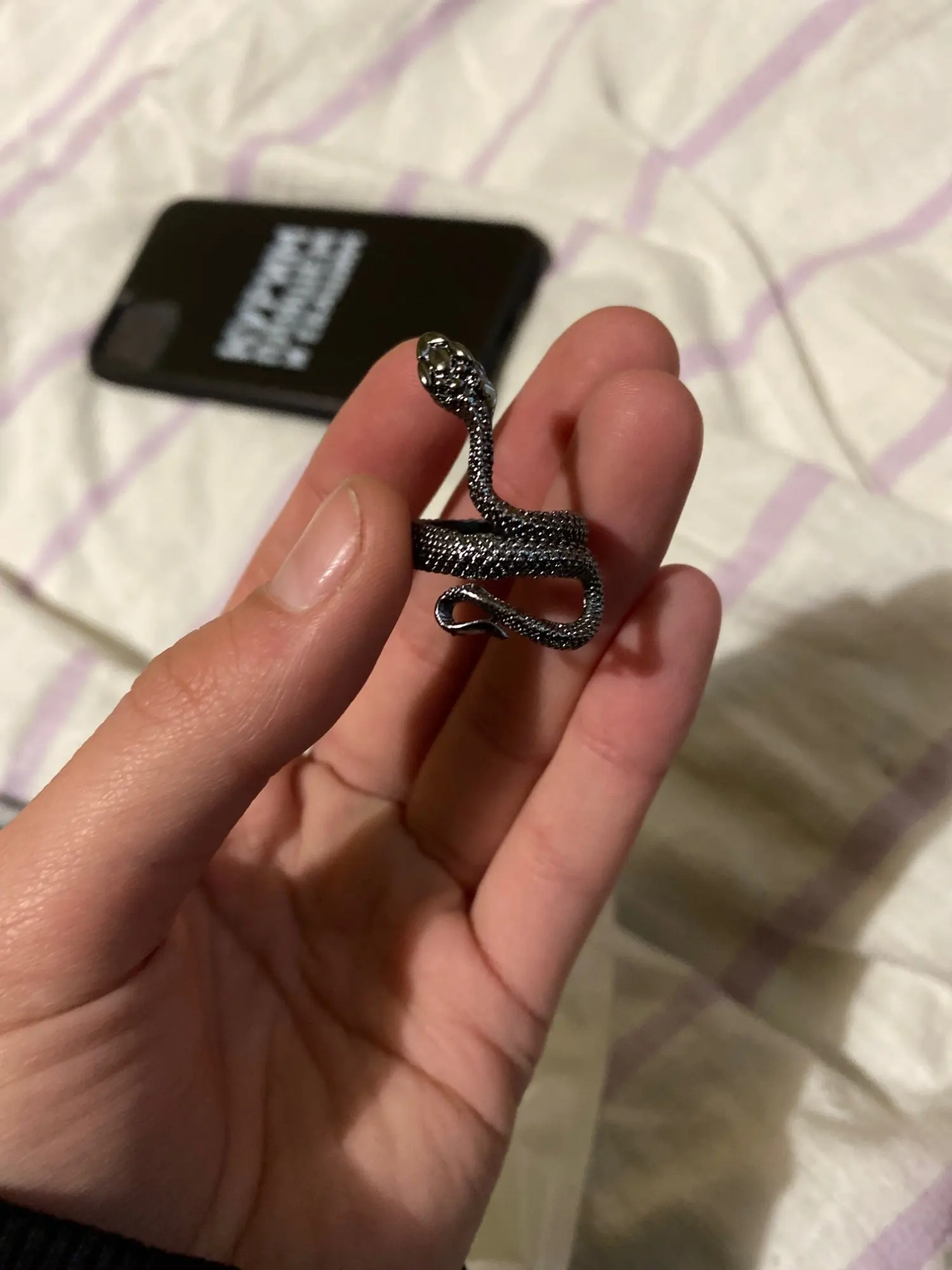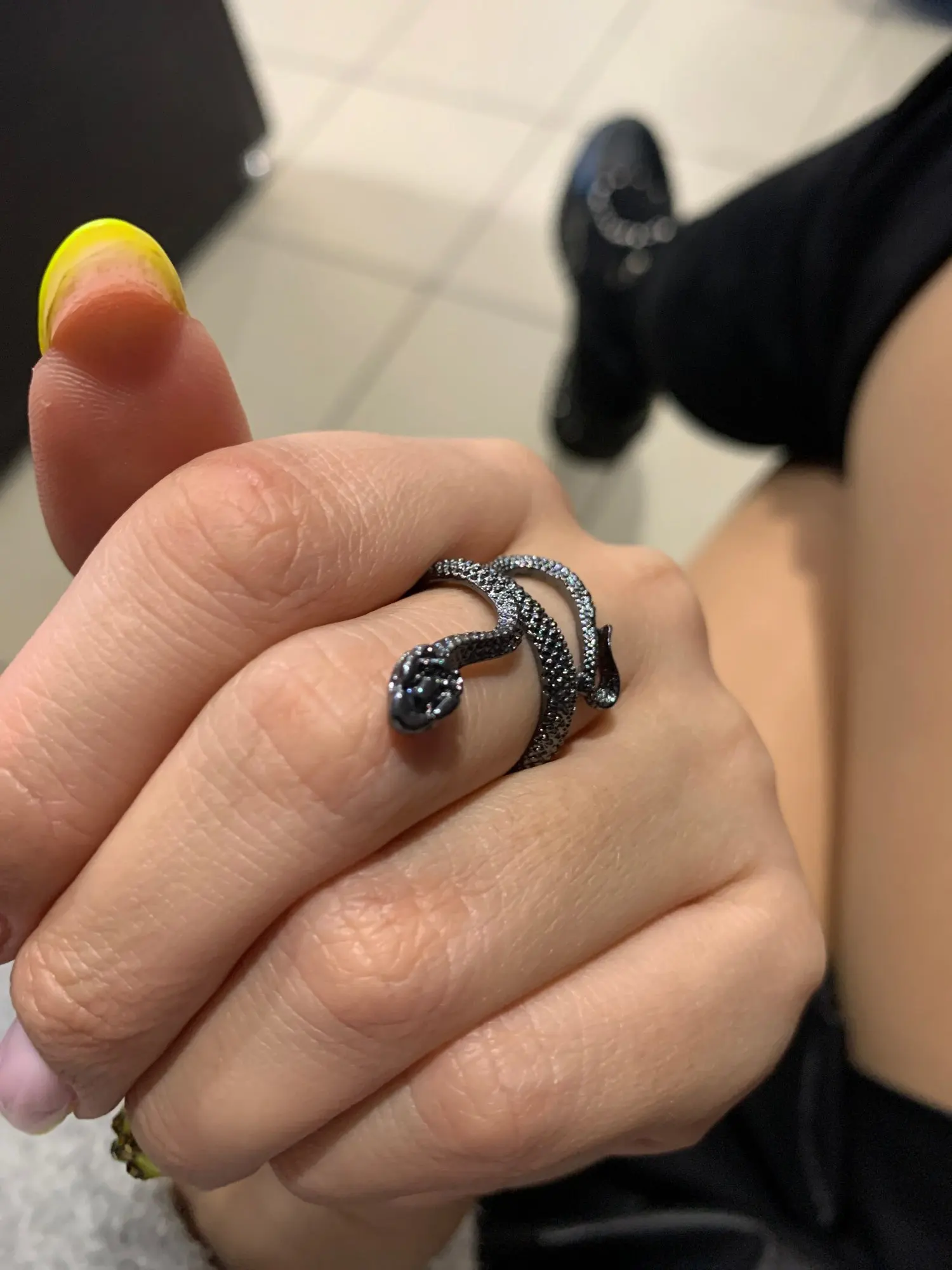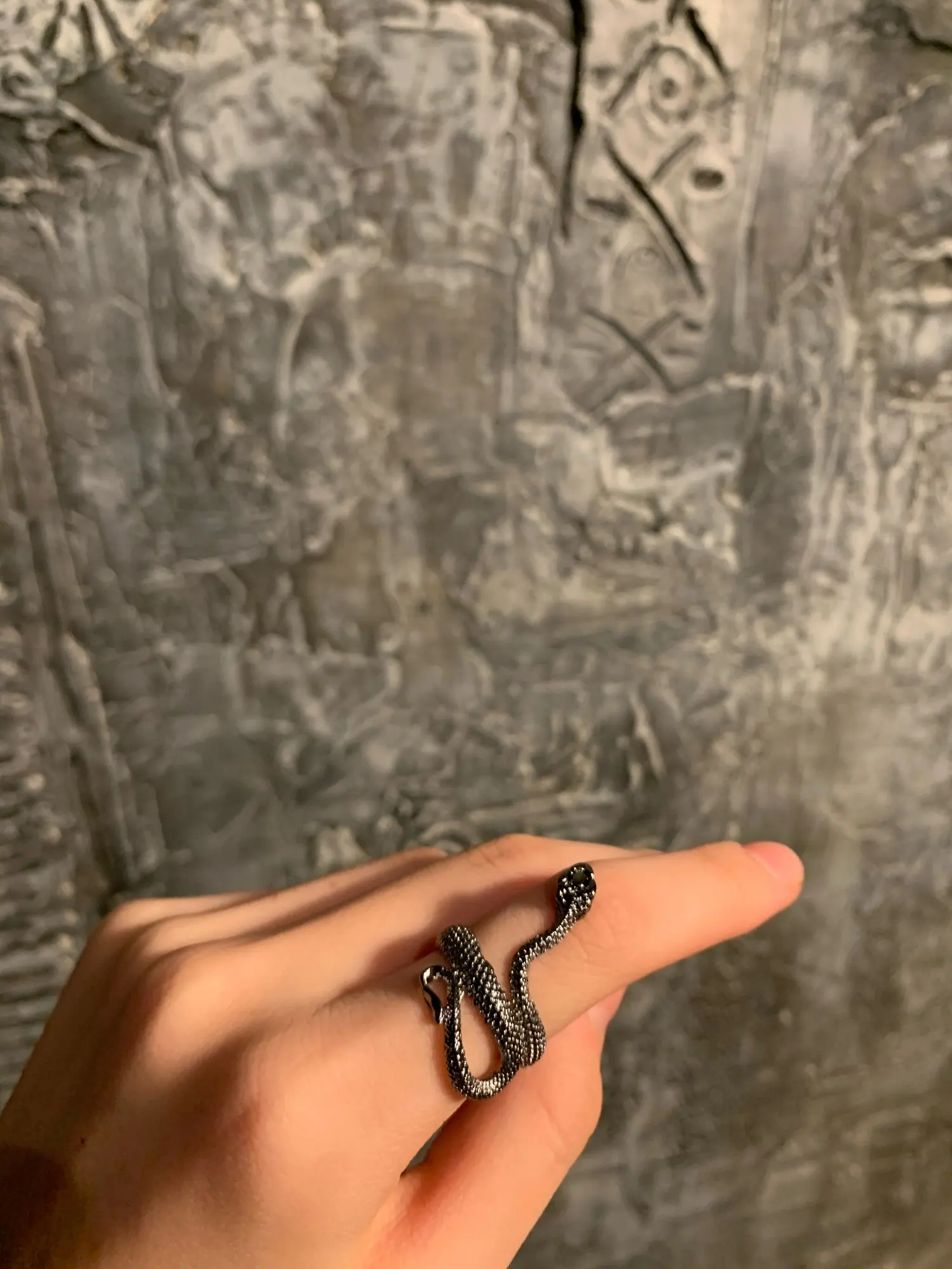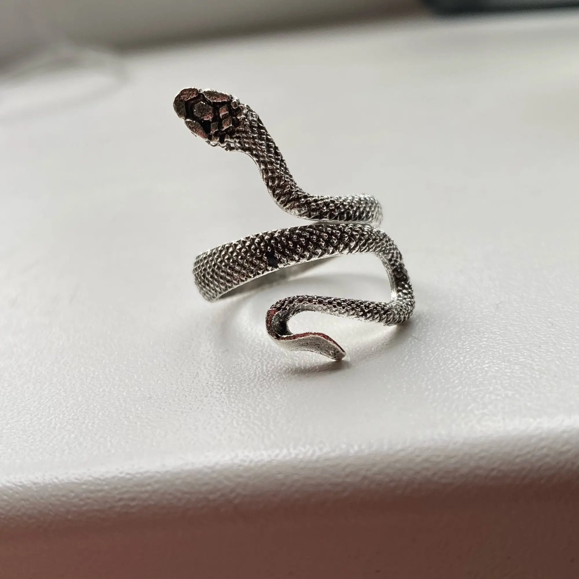 Кольцо красивое и прикольное. Получила чёрное кольцо и спустя пару дней краска облезла на выпуклых частях змеи при носке(можно ногтем легко оттереть), но выглядит так даже неплохо. Но я его решила не носить как кольцо на повседневной основе, тк прочла, что оно сделано из цинкового сплава. В целом оч довольна, за такую-то цену.