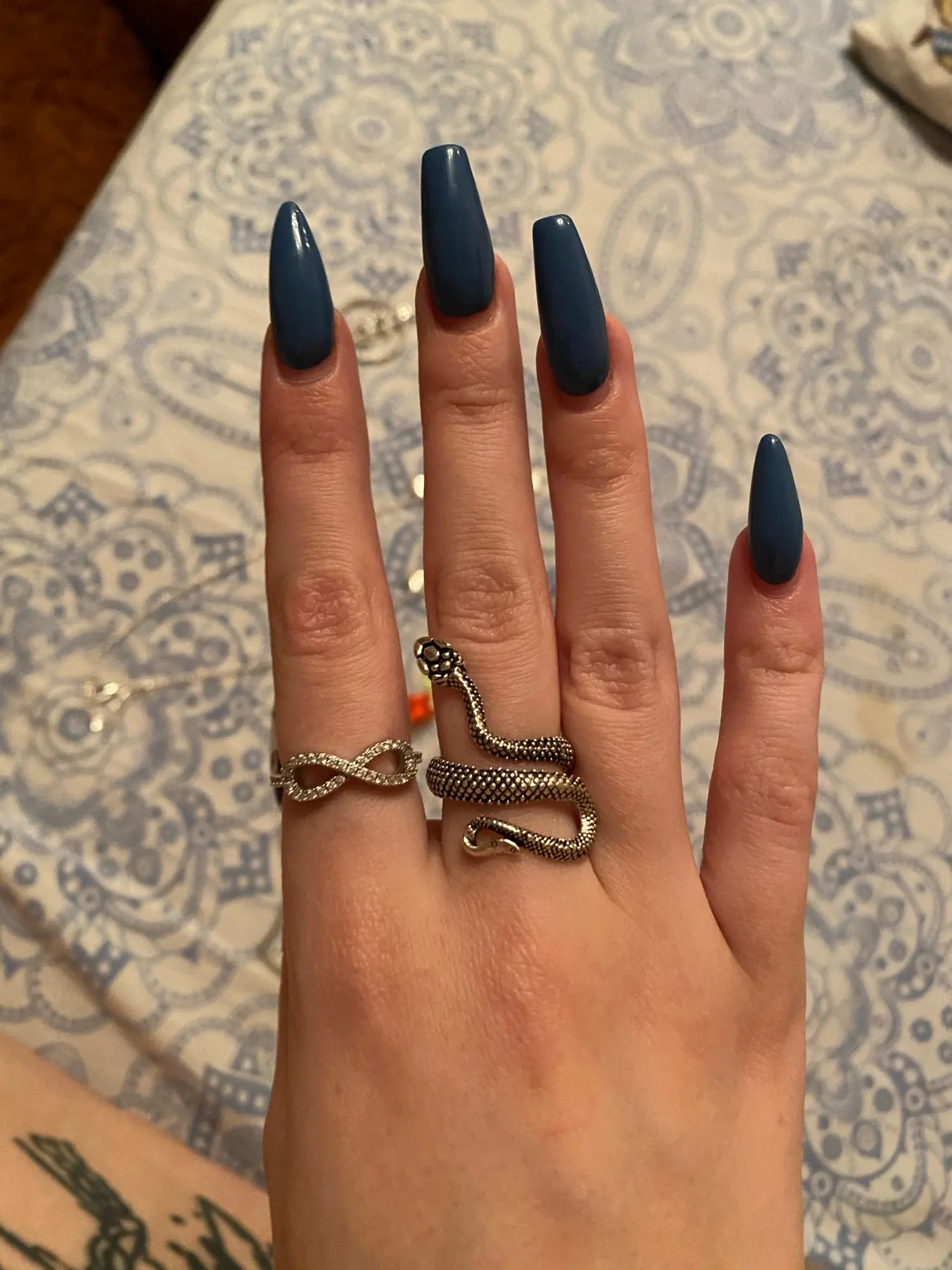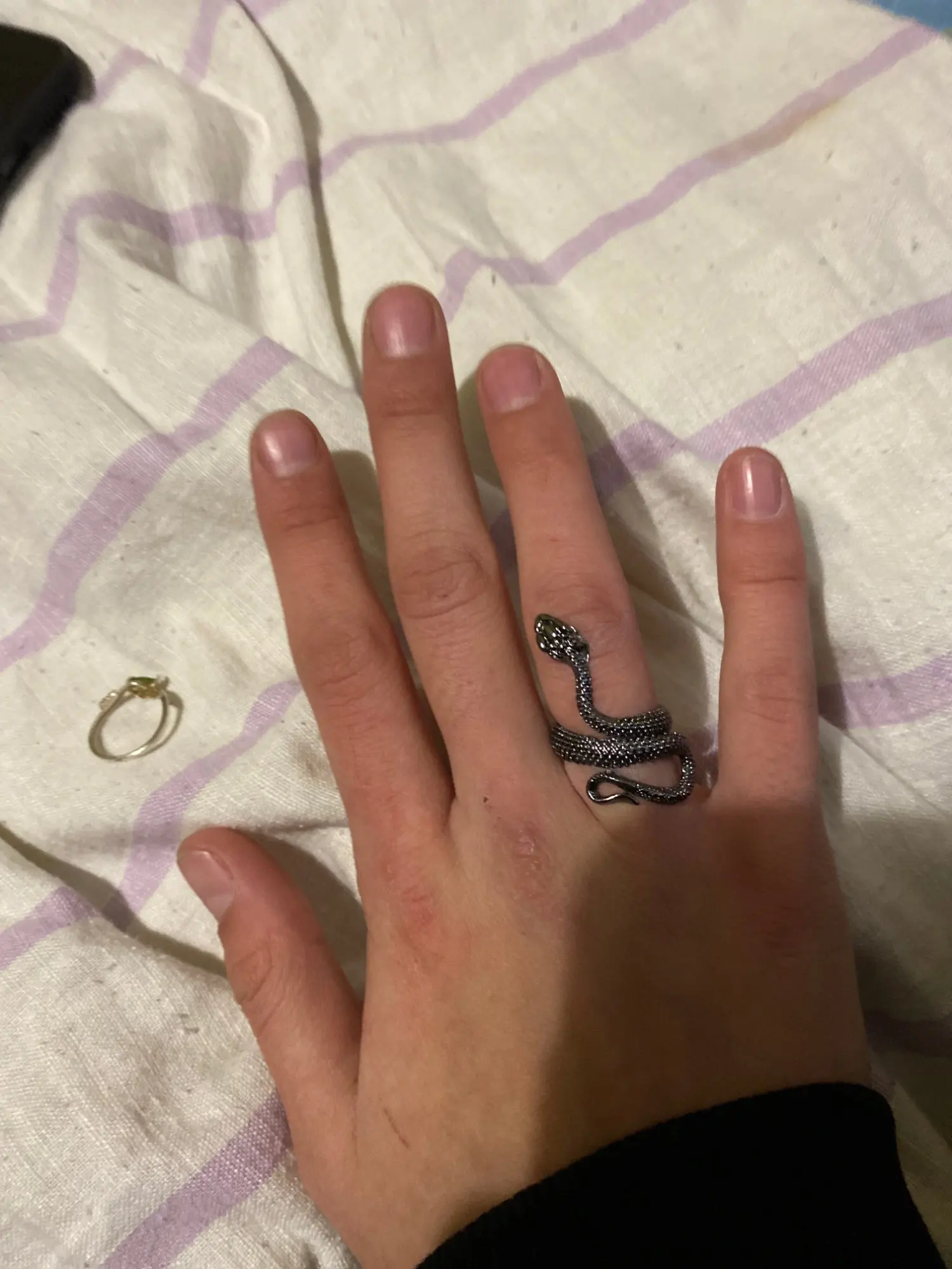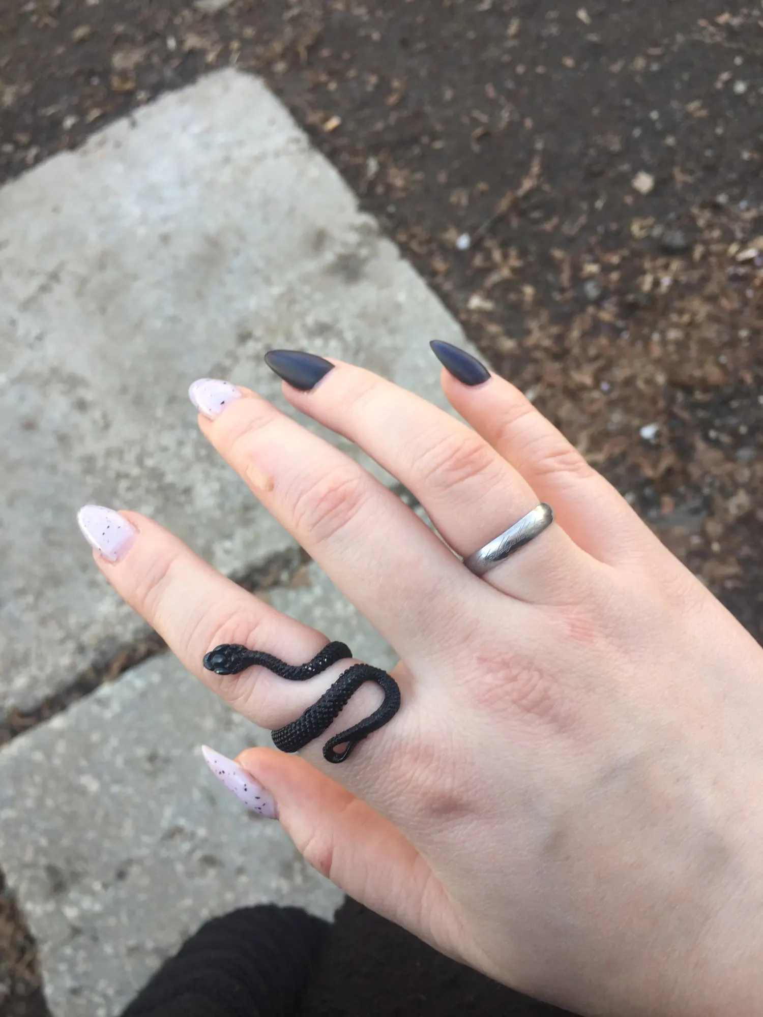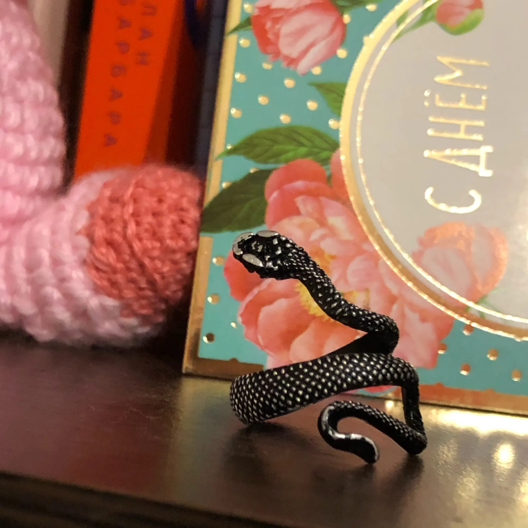Кольцо красивое и прикольное. Получила чёрное кольцо и спустя пару дней краска облезла на выпуклых частях змеи при носке(можно ногтем легко оттереть), но выглядит так даже неплохо. Но я его решила не носить как кольцо на повседневной основе, тк прочла, что оно сделано из цинкового сплава. В целом оч довольна, за такую-то цену.