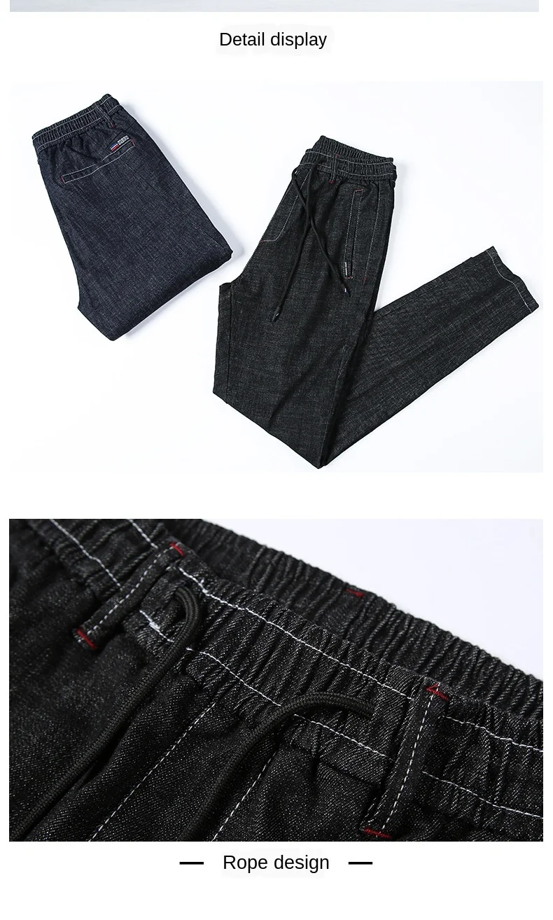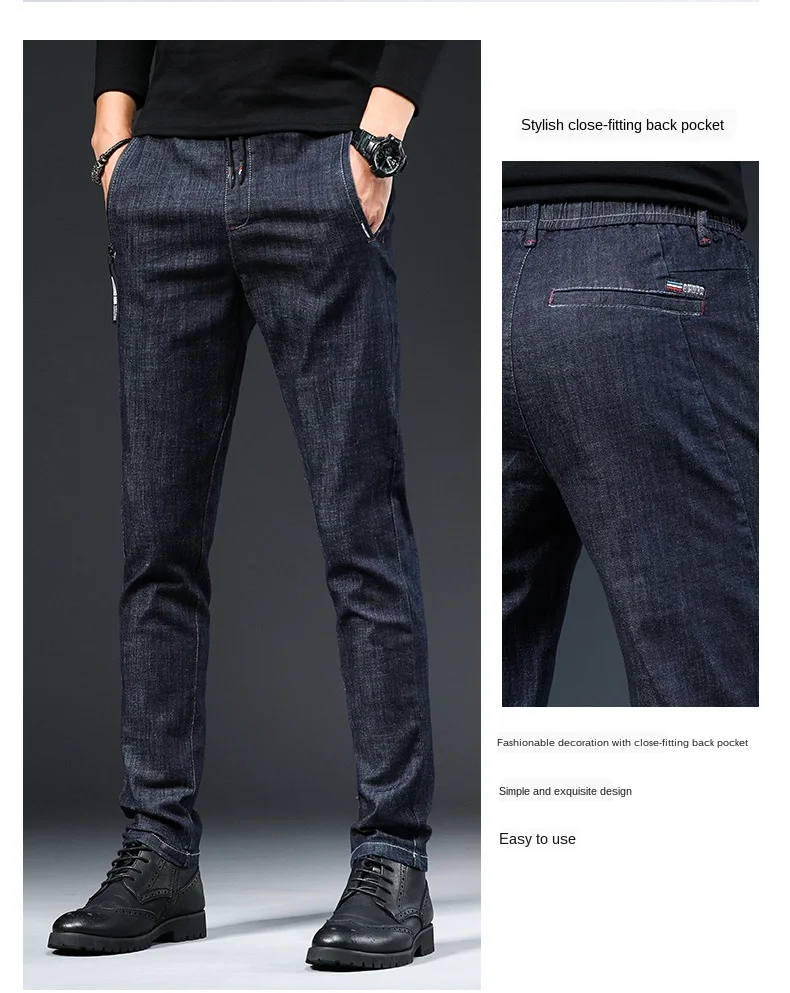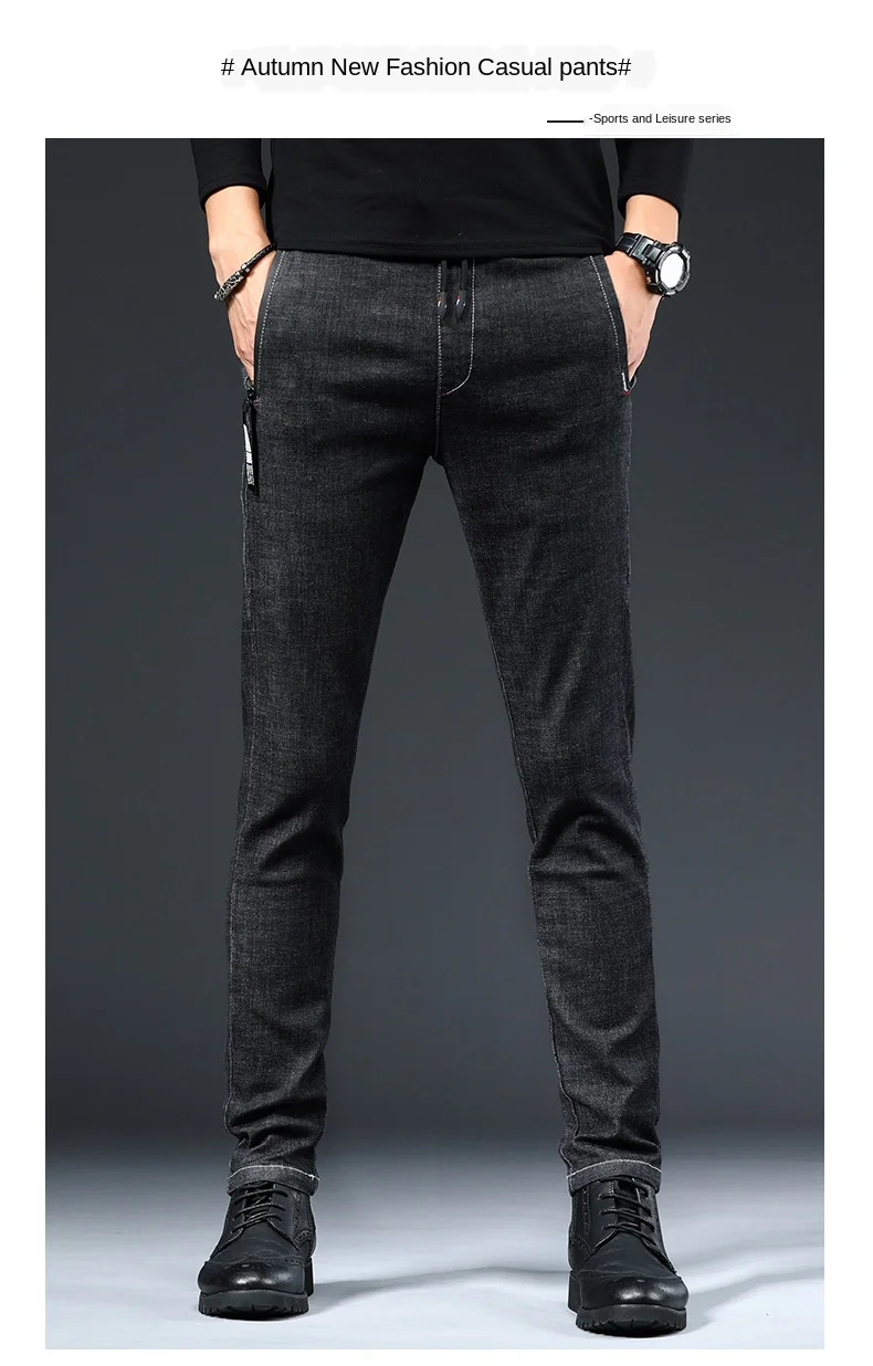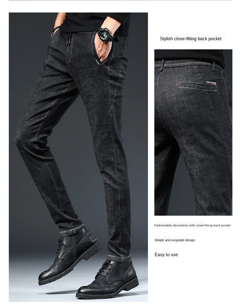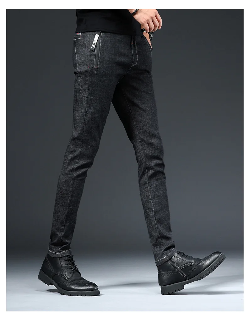 Джинсовые брюки-Карандаш мужские, с эластичной талией, черные, синие, весна-лето, 2020