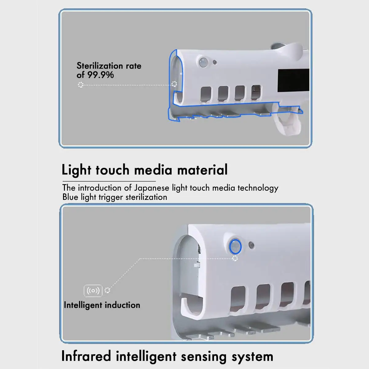-С добавлением сушки этот УФ-держатель для зубных щеток может улучшить скорость сушки головок зубных щеток.