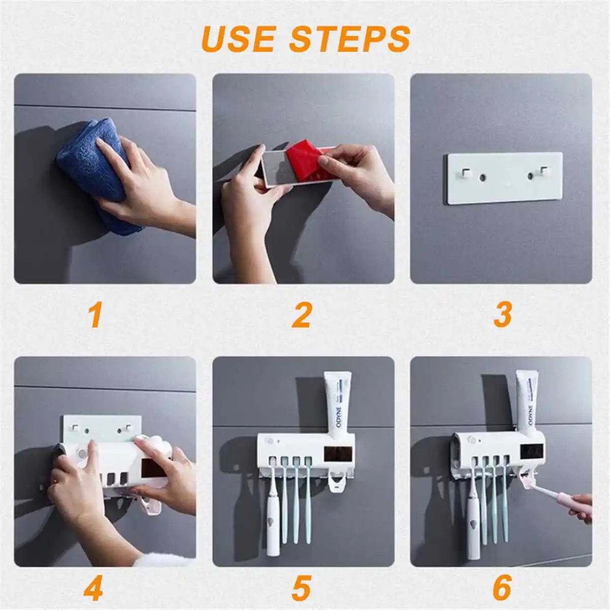 -Простота установки: настенный УФ стерилизатор зубных щеток, легко прикрепить его к стене с помощью двусторонней клейкой ленты.