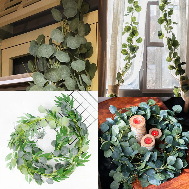 Искусственное растение 2 метра, зеленые листья эвкалипта, домашний декор, подвесное растение, эвкалипт, лоза, украшение для дня рождения, свадьбы