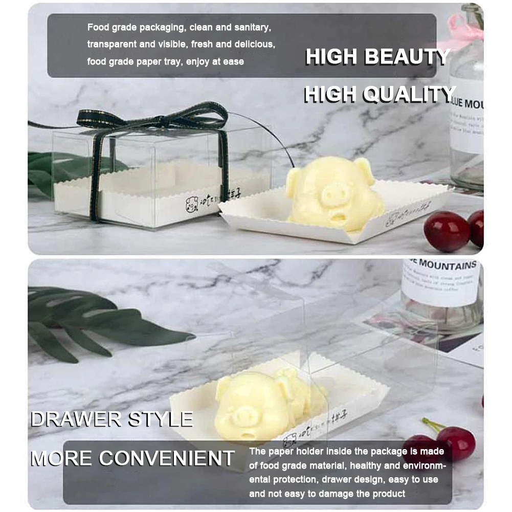 10 шт., портативные прозрачные коробки для торта, пудинги, мусс, упаковка, контейнер для десерта, контейнер для десерта без ленты, коробка для торта
