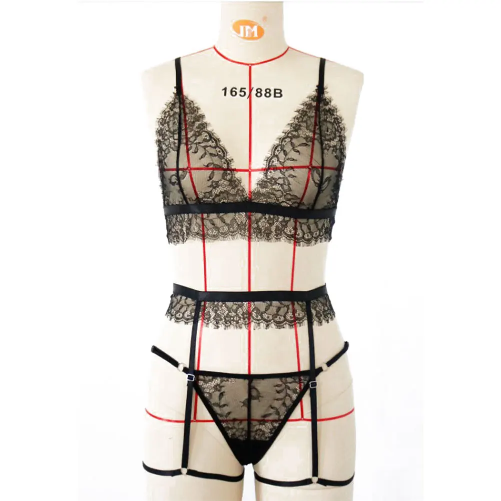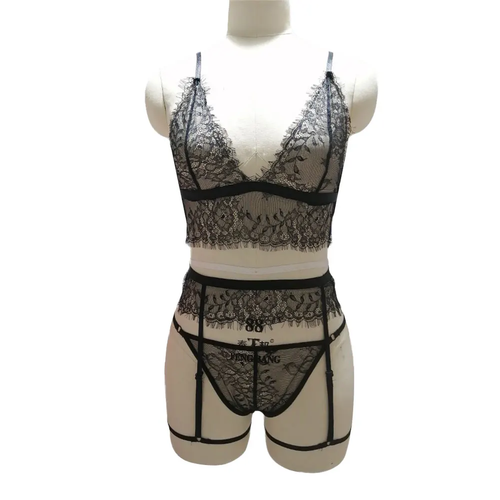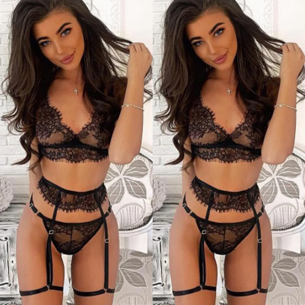 3 шт. женское кружевное сексуальное женское бельё Комплект комбинация прозрачный беспроводной бюстгальтер набор стринги подвязка Нижнее белье Ночное белье наборы бюстгальтер + трусы 2XL