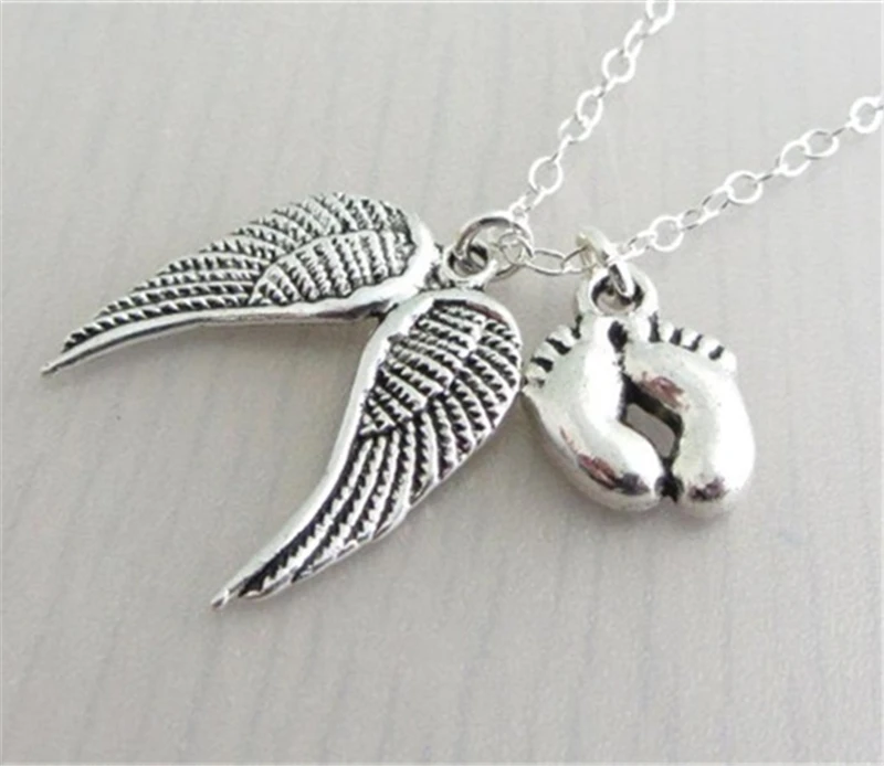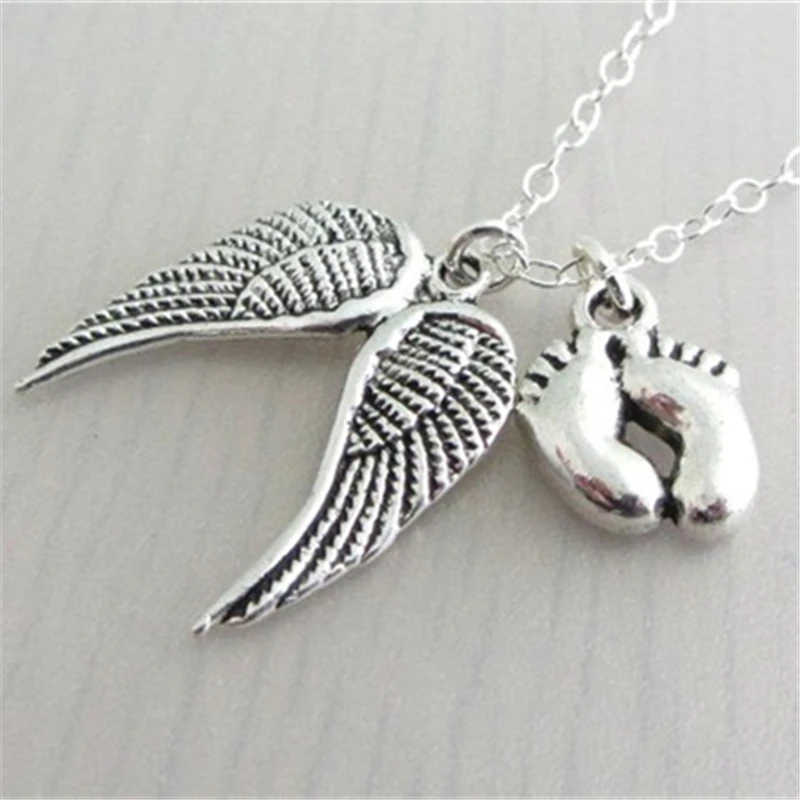 Ожерелье Baby Loss, подвеска Крыло ангела, подвеска крыло, подвеска для ног ребенка, подарок, для нее, посеребренное ожерелье