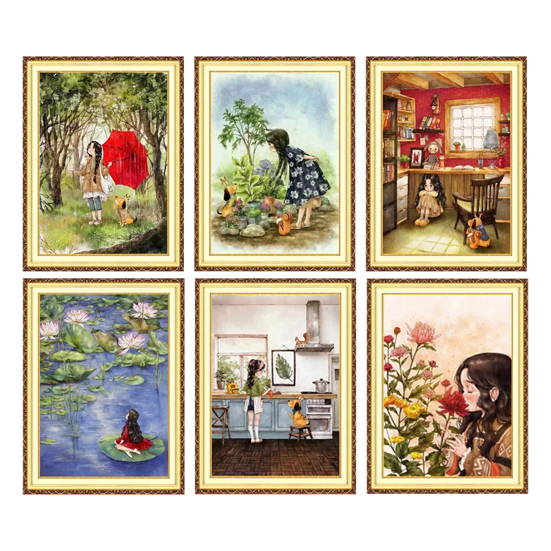Набор для вышивки крестиком 54*73 см с изображением милой девочки из мультфильма, набор для украшения гостиной сделай сам из шелка