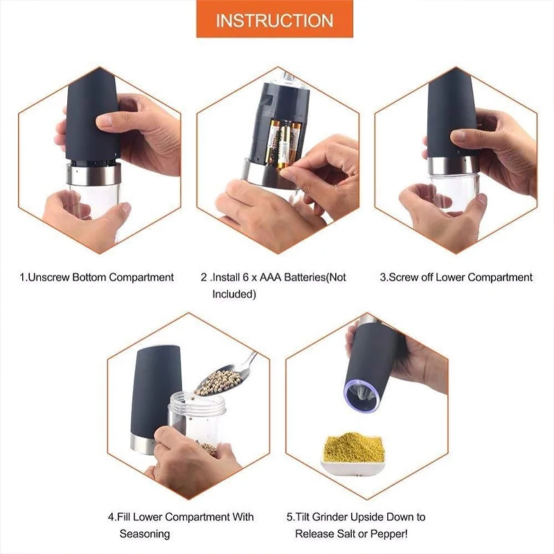 * [Высокое качество и большая емкость]: гравитационная электрическая мельница для соли и перца имеет высококачественный акриловый материал, некоррозионный и антиоксидантный, делает специи свежими и здоровыми. Большая емкость и легко заправляется, простой и модный дизайн, подходит для всех обеденных столов и кухонных столешниц. * [Простота в использовании]: Нет кнопок для нажатия или ручного шлифования, одной рукой, просто Наклоните, чтобы автоматически активировать электрическую мельницу. Синий светодиодный светильник включается автоматически. Он прост и удобен в использовании и подходит для всех людей. * [Регулируемая грубость]: Отрегулируйте верхний регулятор для измельчения вашей электрической мельницы с грубой до тонкой. Поверните по часовой стрелке в мелкие частицы и поверните против часовой стрелки, чтобы измельчить в крупные частицы. * [Питание от аккумулятора]: электрическая перцовая шлифовальная машина работает от 6 батареек AAA, без кнопок для нажатия или ручного шлифования. (Батарейки в комплект не входят) * [Современный дизайн]: высококачественная нержавеющая сталь и акриловый корпус с элегантным дизайном будут соответствовать любой кухне и обеденному столу и очаровать вашу семью и гостей. * [Широкая применимость]: отличный и удивительный шлифовальный инструмент для перца на кухне. Замечательный гаджет для приготовления свежего перцового порошка для наслаждения вкусным салатом или стейком. Идеальный подарок на день рождения, День благодарения, Рождество, День матери, День Святого Валентина или любой праздник.