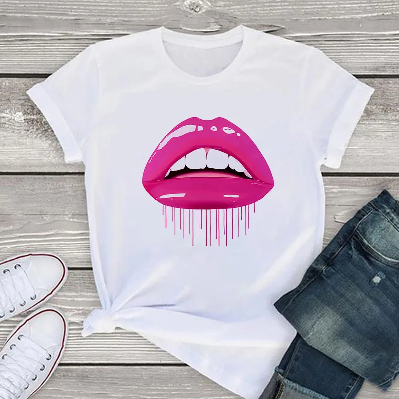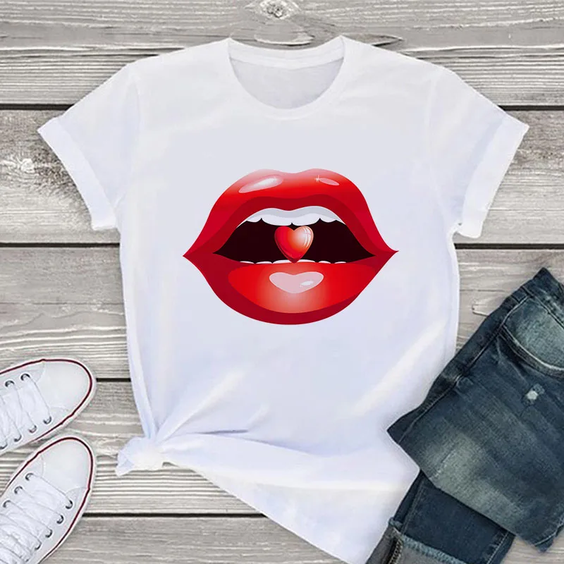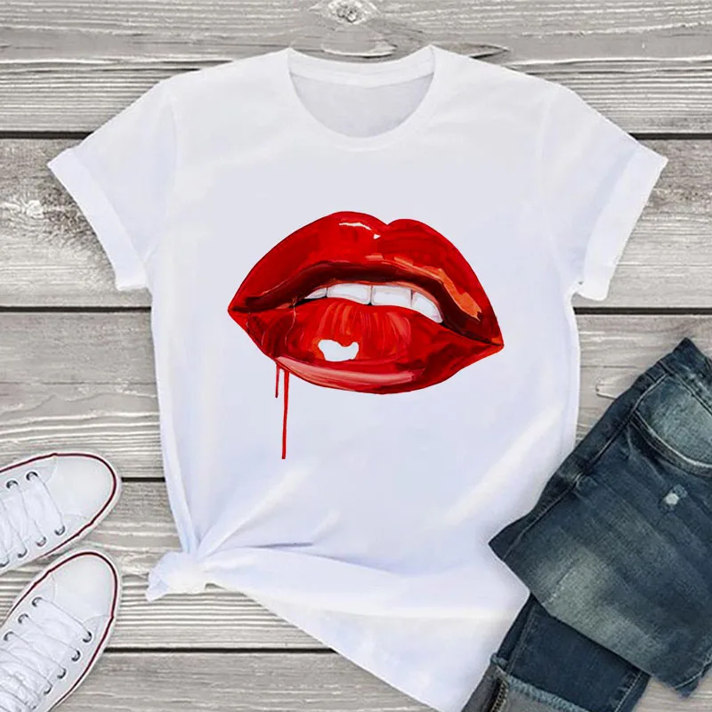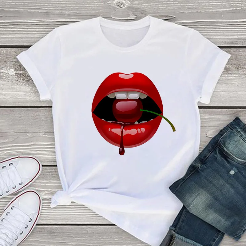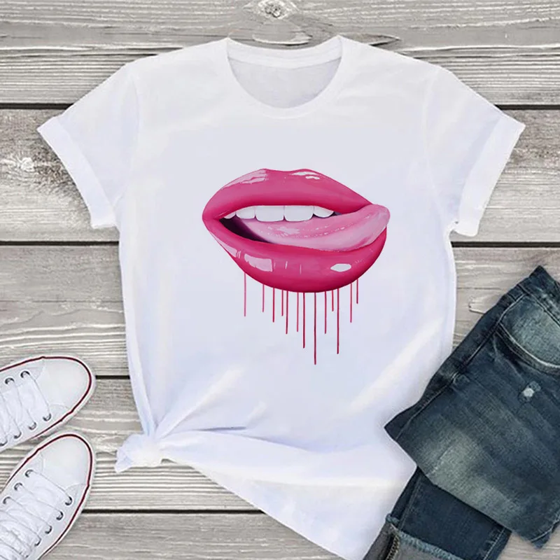 Новая женская одежда Harajuku, Сексуальная футболка с принтом губ, ...