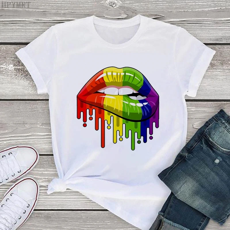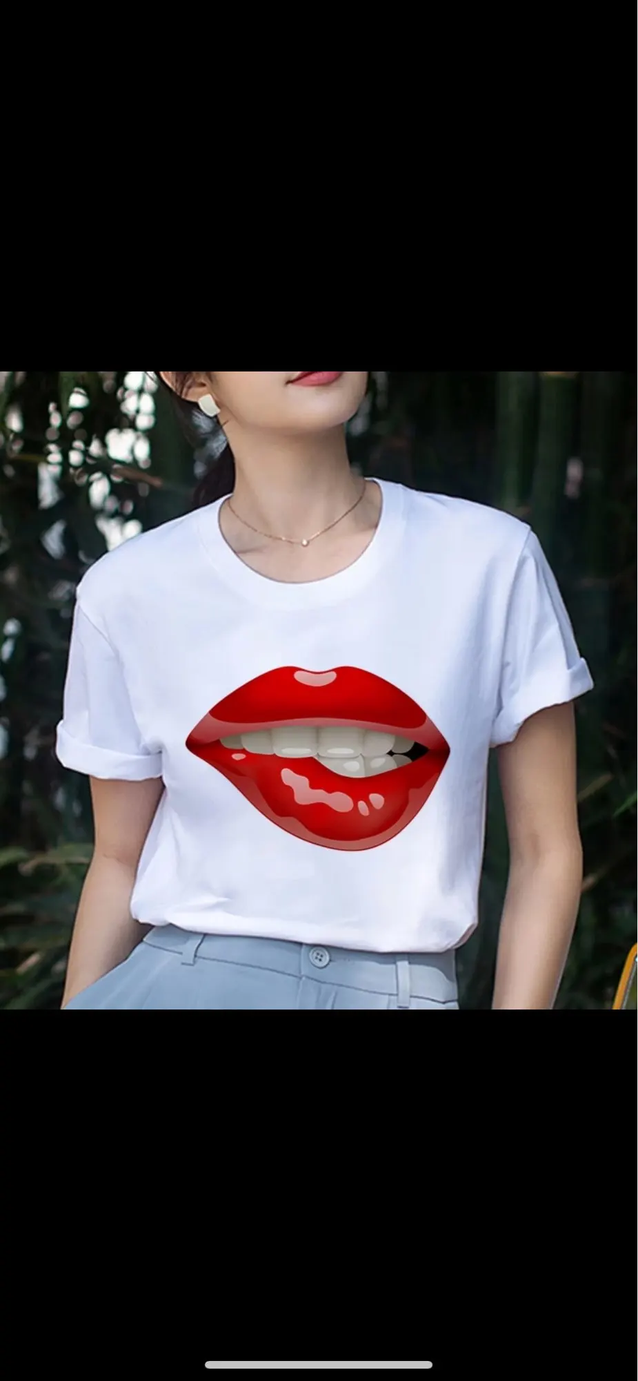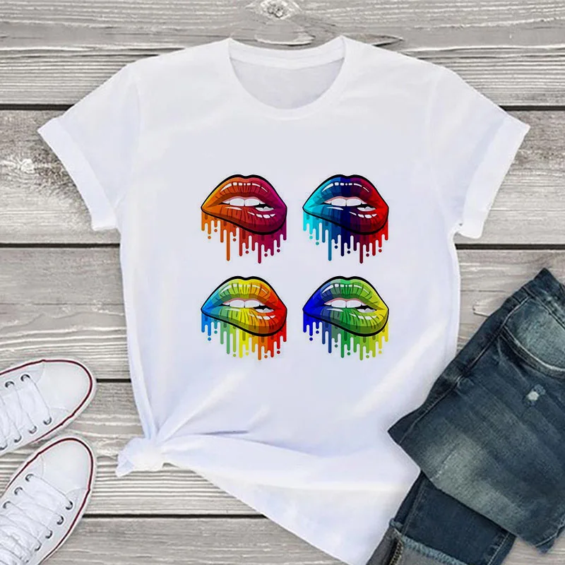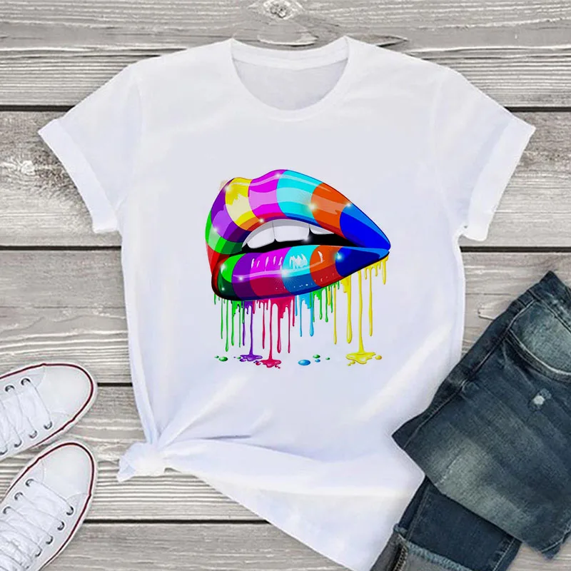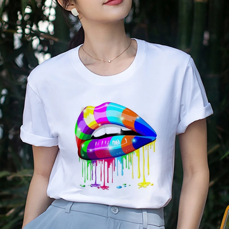 Новая женская одежда Harajuku, Сексуальная футболка с принтом губ, ...