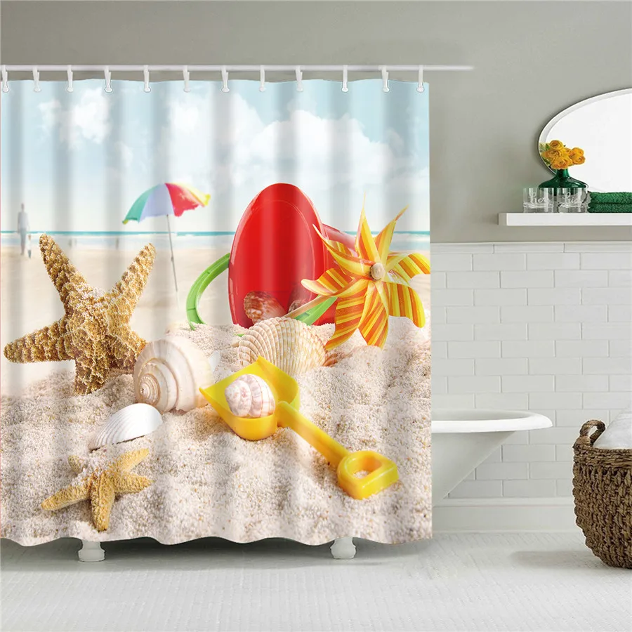 Морская пляжная штора с 3d рисунком, водонепроницаемая моющаяся зан...