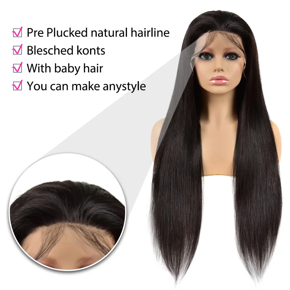 Парик прямой на прозрачной сетке 13x4, парик фронта шнурка 100%, парик из натуральных волос, парик с застежкой шнурка 30 дюймов, плотность 180%, бразильские волосы Реми