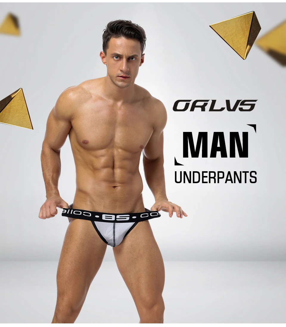 Мужские трусы стринги из сетчатой ткани ORLVS, черные трусы-джоки, брифы для пениса, гей-стринги, двойное нижнее белье для мужчин OR139, 2019