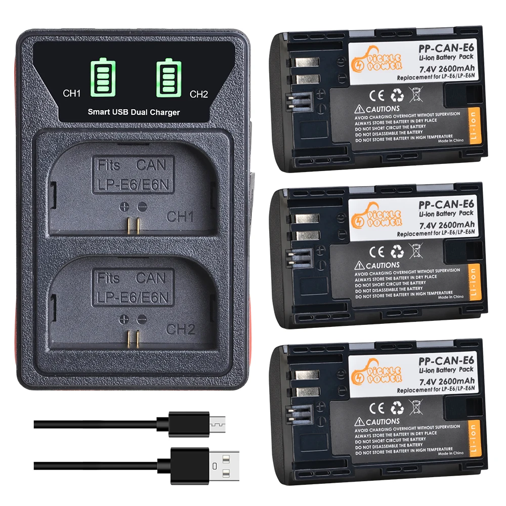 LP-E6 LP E6 LPE6 LPE6N батарея и светодиодный двойной зарядное устройство для Canon EOS 5D 6D 7D 60D 70D 80D Mark II Mark III