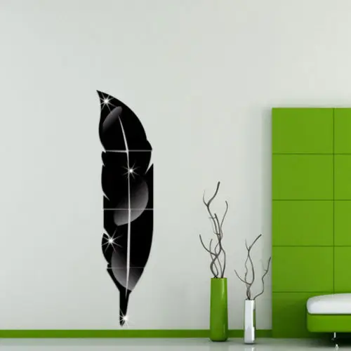 Зеркальные настенные 3d-наклейки с перьями, Стикеры для зала, спальни, кухни, ванной комнаты, украшение для дома сделай сам, зеркальные наклейки на стену