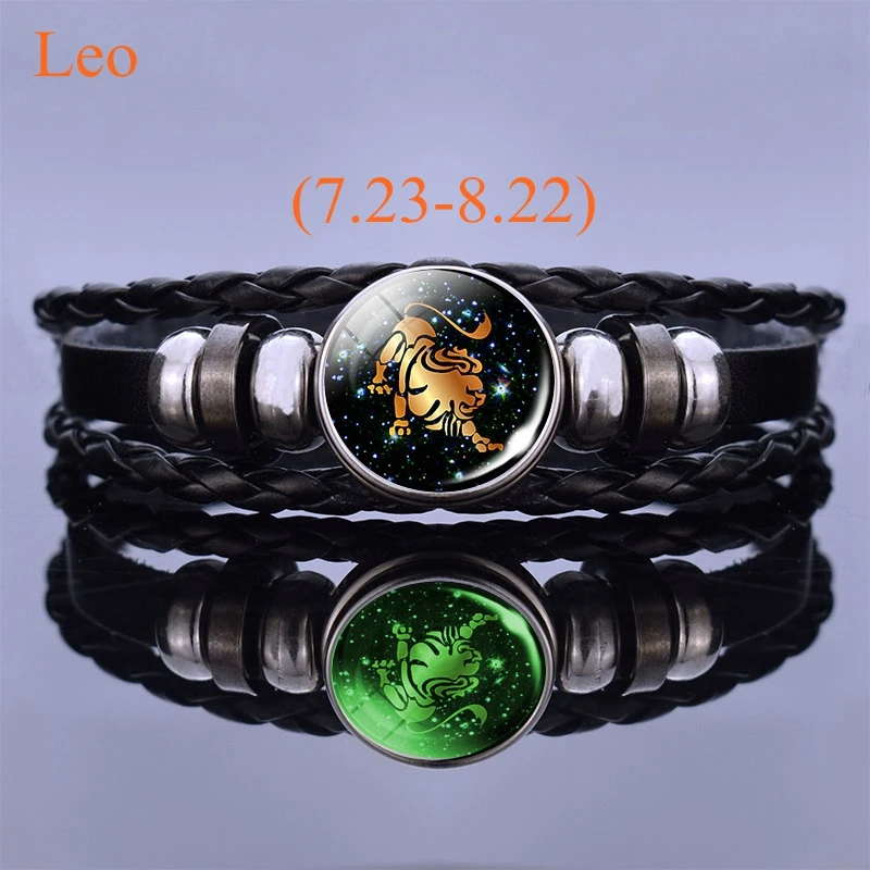 Браслет из светящейся кожи 12 созвездий зодиака для мужчин и женщин, Плетеный веревочный браслет, подарок на день рождения, светится в темноте браслет