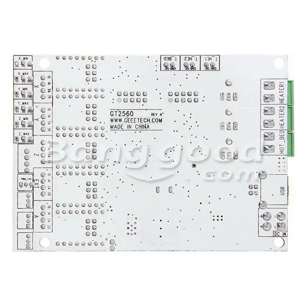 5 шаговых двигателей, заменяемые модули вождения, мощный процессор ATmega2560 с памятью 256k, рабочая частота 16 МГц, высокопроизводительный USB последовательный преобразователь FT232RQ, все это делает GT2560 идеальным вариантом для платы управления 3D принтером. Более того, GT2560 может работать более 12 В и выводить 90 Вт на MOSFET, что обеспечивает более высокий крутящий момент и более высокую скорость вращения.