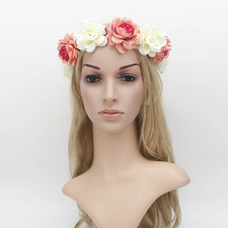 Свадебный головной убор, Шелковая Роза головной убор Венок, Женский обруч для волос, пляжный фото, дорожный венок, искусственный цветок, роза, венок