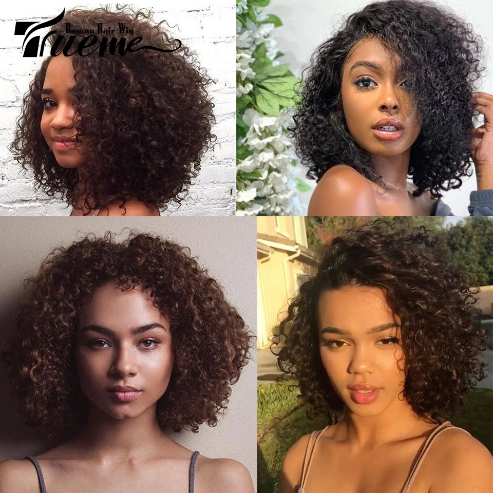 Парик Trueme с кудрявым Бобом, парики из человеческих волос на сетке спереди, цветные бразильские парики с водной волной, для женщин, парики с влажной и волнистой сеткой спереди, парик