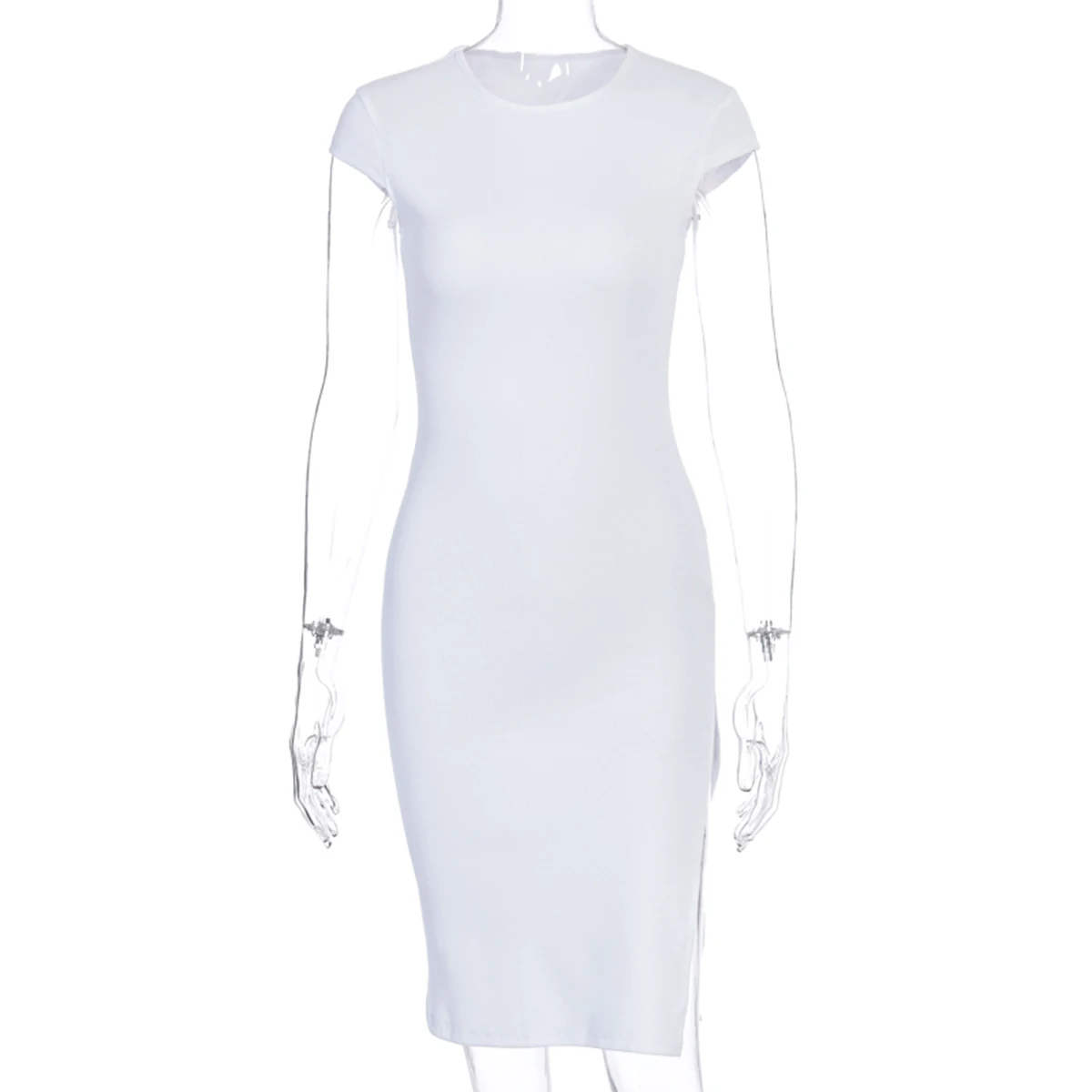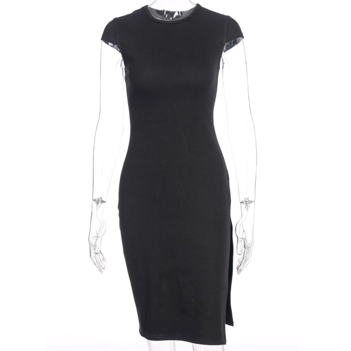 Hirigin Новое сексуальное мини-платье без рукавов с высоким разрезом, однотонное женское платье на бретелях, модное облегающее Повседневное платье в рубчик с круглым вырезом