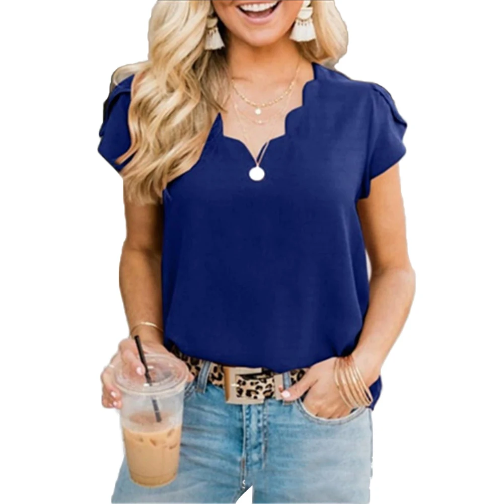 Офисная Женская однотонная модная блузка с v-образным вырезом и коротким рукавом Характеристики: Однотонная футболка с волнистым вырезом, который является уникальным и стильным дизайном. Вы можете сочетать все виды штанов, чтобы выглядеть красиво. Подходит для работы, уличной одежды, путешествий, свиданий, покупок, повседневной носки и т. д. Тип: футболка Тип размера: Обычный Пол: женщин Материал: нейлон, полиэстер, спандекс Стиль: Модный Длина рукава: короткий рукав Тип шеи: v-образный вырез Уход За Одеждой: ручная стирка Особенности: волнистый вырез, подходит ко всему, дышащий Информация о размере: [Наш Размер S] Обхват груди: 94 см/37 ", ширина плеч: 39 см/15,4", Длина: 66 см/26 "(прибл.) [Наш Размер M] Обхват груди: 98 см/38,6 дюйма, ширина плеч: 40 см/15,7 дюйма, длина: 67 см/26,4 дюйма (прибл.) [Наш Размер L] Обхват груди: 102 см/40,2 дюйма, ширина плеч: 41 см/16,1 дюйма, длина: 68 см/26,8 дюйма (прибл.) [Наш Размер XL] Обхват груди: 106 см/41,7 дюйма, ширина плеч: 42 см/16,5 дюйма, длина: 69 см/27,2 дюйма (прибл.) [Наш Размер 2XL] Обхват груди: 110 см/43,3 дюйма, ширина плеч: 43 см/16,9 дюйма, длина: 70 см/27,6 дюйма (прибл.) [Наш Размер 3XL] Обхват груди: 114 см/44,9 ", ширина плеч: 44 см/17,3", Длина: 71 см/28 "(прибл.) Примечания: Пожалуйста, обратитесь к нашей таблице размеров и выберите правильный размер. Из-за разницы в освещении и настройках экрана светильник может значительно отличаться от цвета на фотографии. Посылка включает в себя: 1 футболка