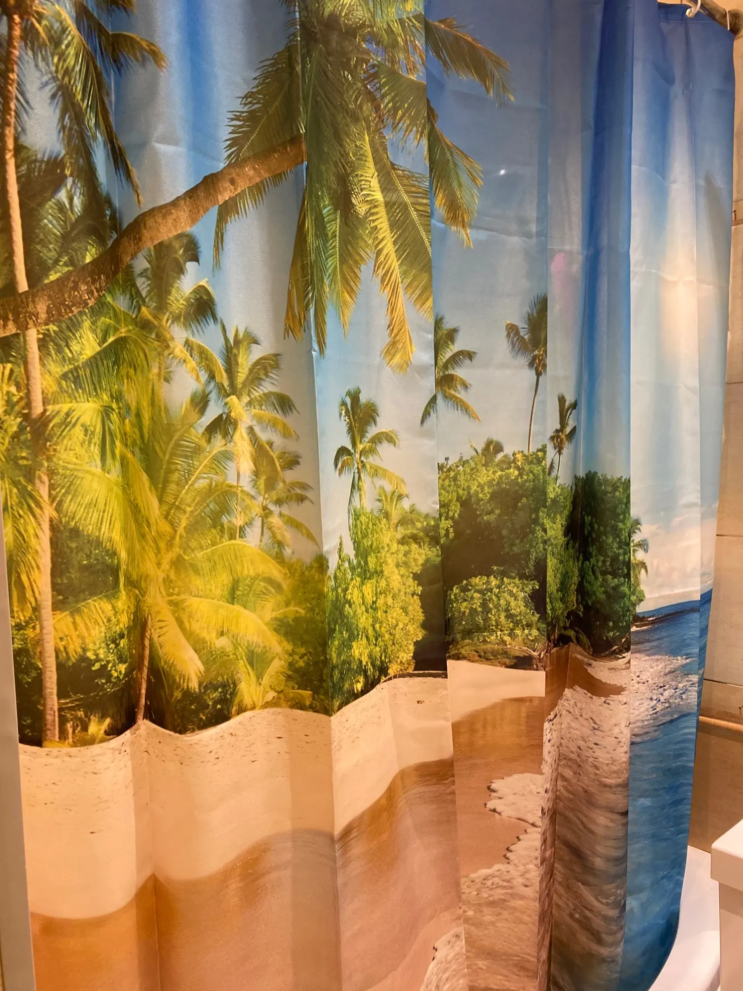 Занавеска для душа с кокосовой пальмой, водонепроницаемая, с крючками, морское море, пляж; Морские волны