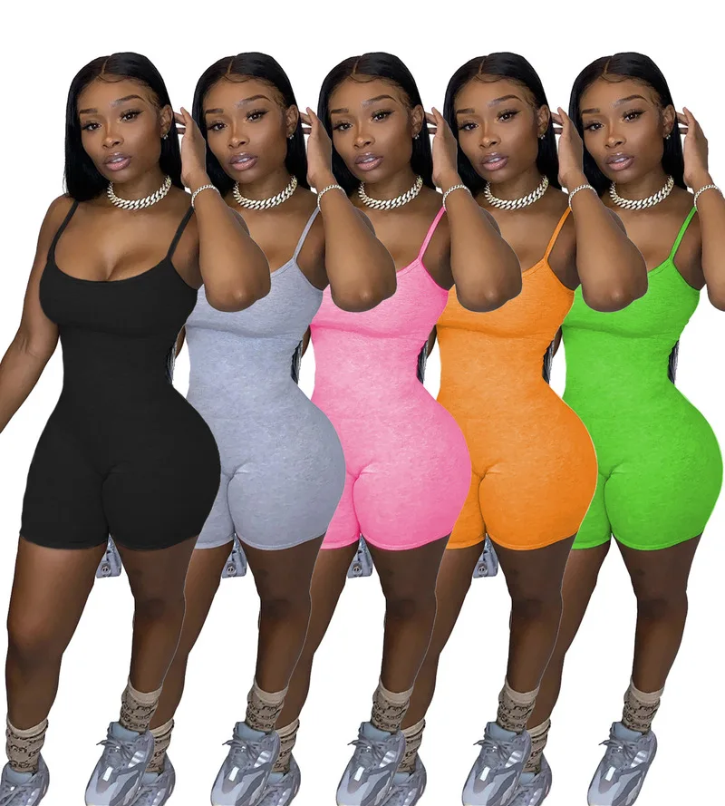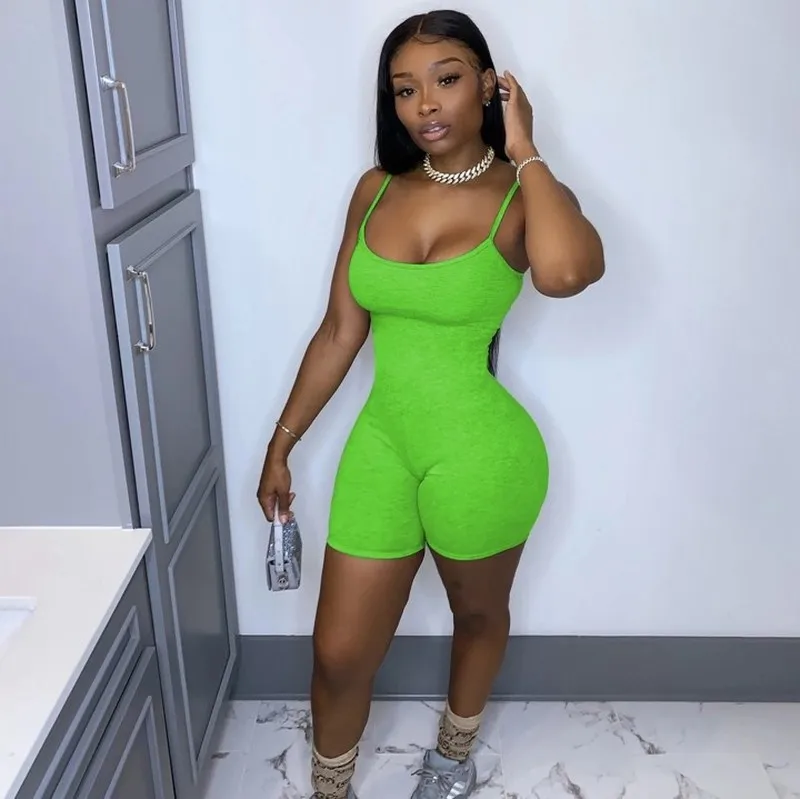 Комбинезон женский в байкерском стиле, пикантный облегающий Повседневный Ромпер, шорты на бретелях, Облегающий комбинезон, на лето