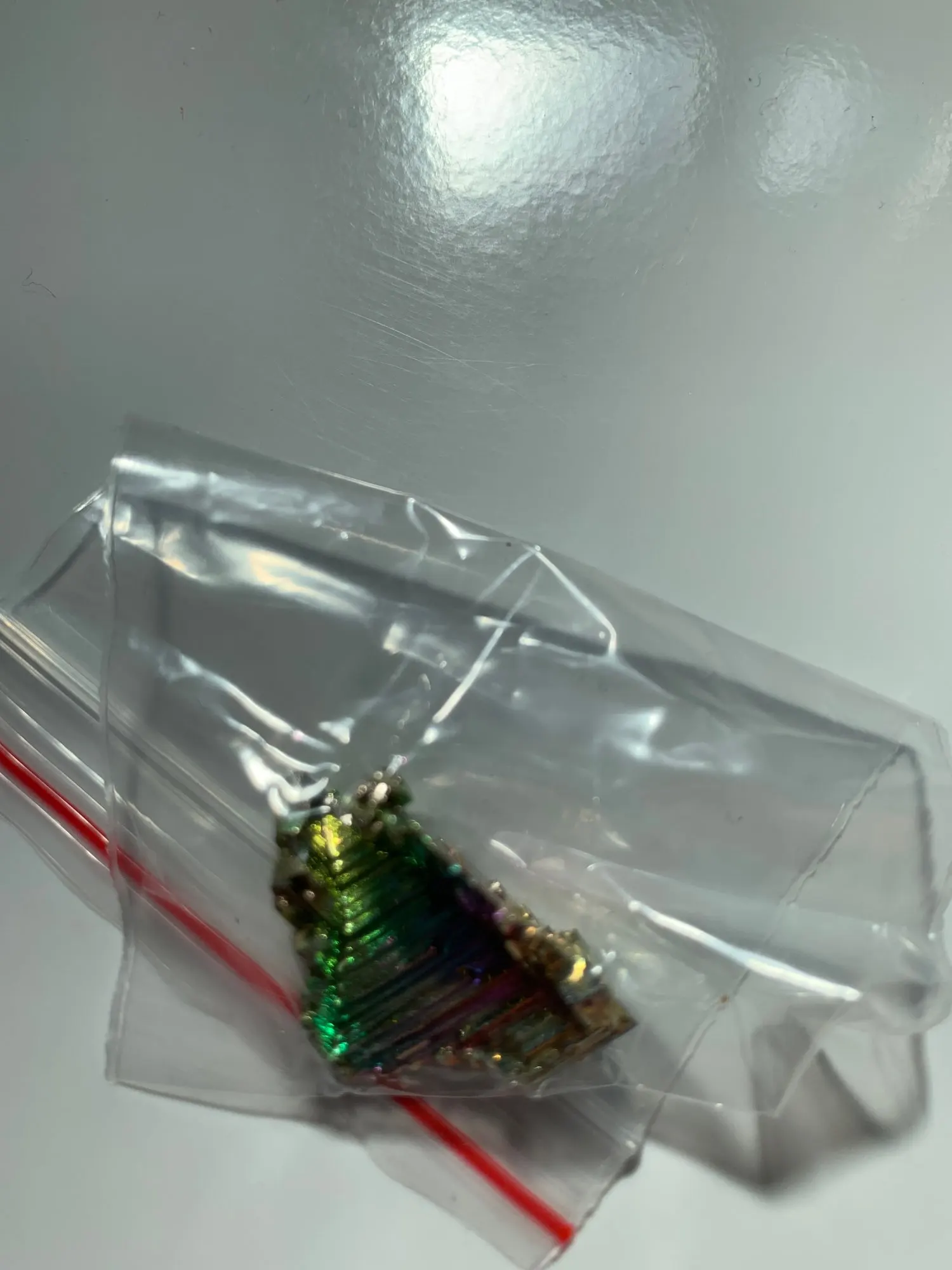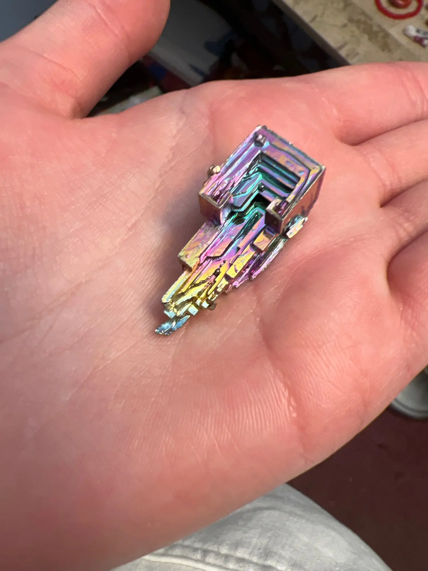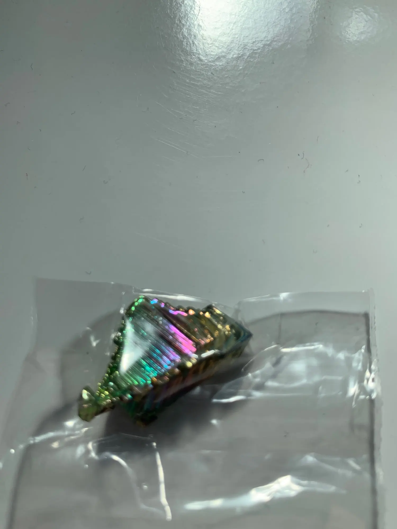 Красивый маленький кусочек, обратите внимание, что это не совсем камень, а металл висмут. я как человек, далёкий от геологии, спутала :D