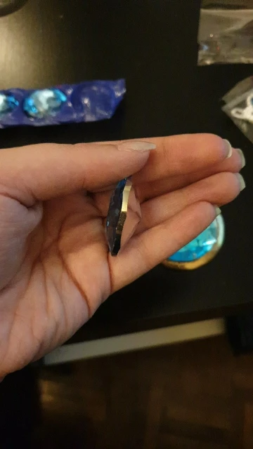 Посылка в Казахстан пришла через месяц с небольшим, в подарок продавец положил красную нитку. Но мне бы хотелось получить более качественный товар. Стразы целые, но покрытие на них повреждено. Они все имеют царапины на поверхности. Так что в украшениях их использовать не возможно. Если только на обувь куда нибудь прицепить(((( очень жаль, но стразы действительно красивые. И цвет просто шикарный, и переливаются на солнце.