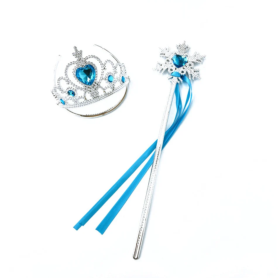 Платье с изображением короны Снежной Королевы для девочек; Платье с жезлом для принцессы Эльзы; Милые аксессуары для волос для девочек; Вечерние детские карнавальные игрушки для дня рождения