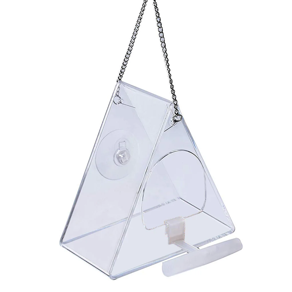 Подвесная птица, регулируемая треугольная кормушка для домашних животных на присоске, контейнер для еды, прозрачный акриловый поднос, аксессуары для птиц