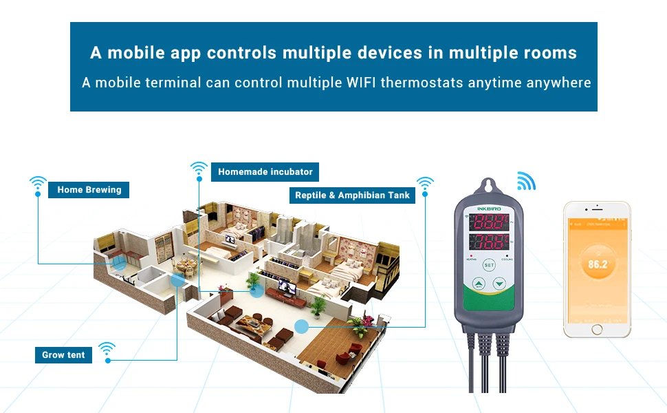 Термостат Inkbird AU Plug ITC-308, Wi-Fi, цифровой контроллер температуры, бесплатное приложение для IOS и Android