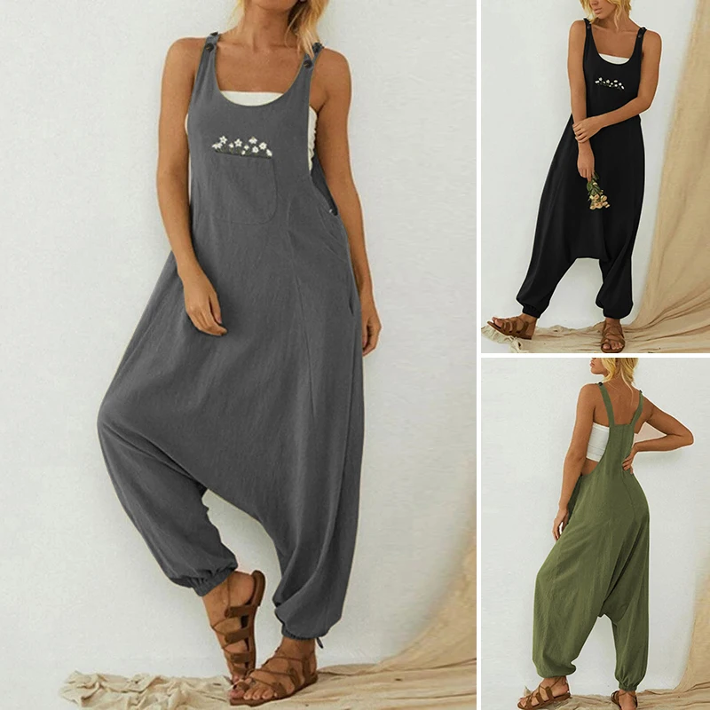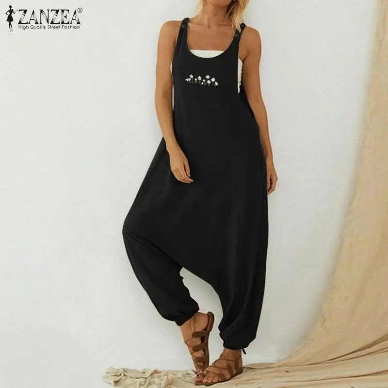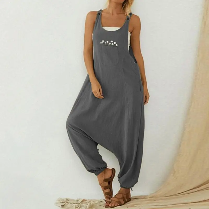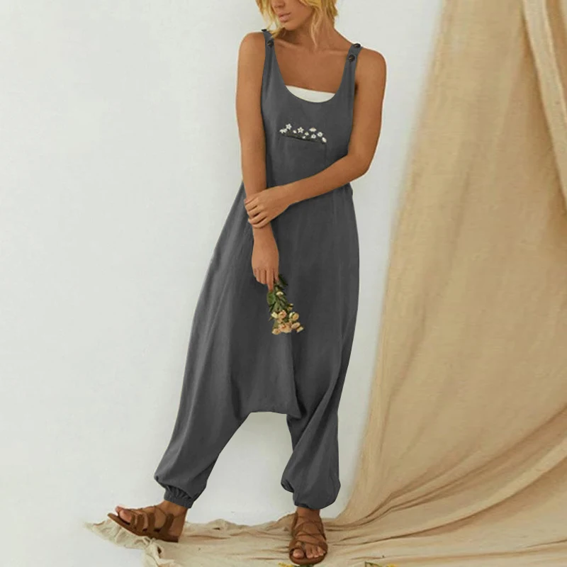 Женский комбинезон без рукавов, с круглым вырезом и вышивкой