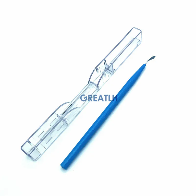 Щелевой нож: щелевой нож предназначен для создания основного разреза в хирургии Катаракты. Он обеспечивает точную ширину, чтобы соответствовать наконечнику эмульгирования phaco.