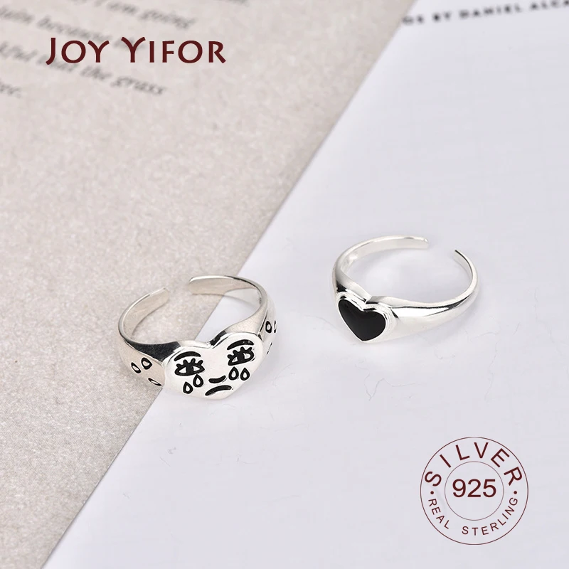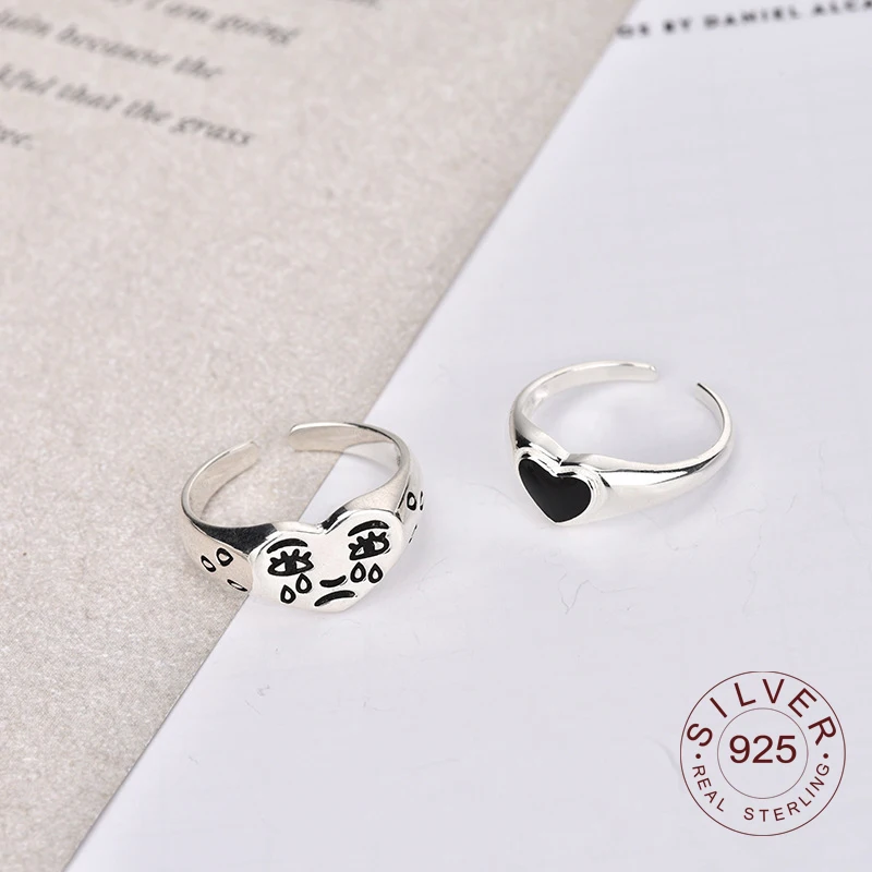 Винтажные серебристые металлические кольца в стиле панк, с плачущим лицом, сердцем, черные открытые круглые кольца, дизайн на палец, кольца для мужчин и женщин, ювелирные изделия для вечеринок, подарки