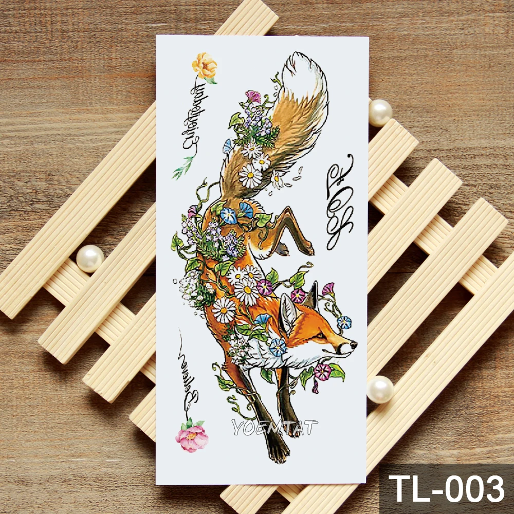 Водостойкие временные татуировки наклейки на боди-арт, временные мужские татуировки, панда, лиса, цветы, узор, поддельные татуировки, наклейки
