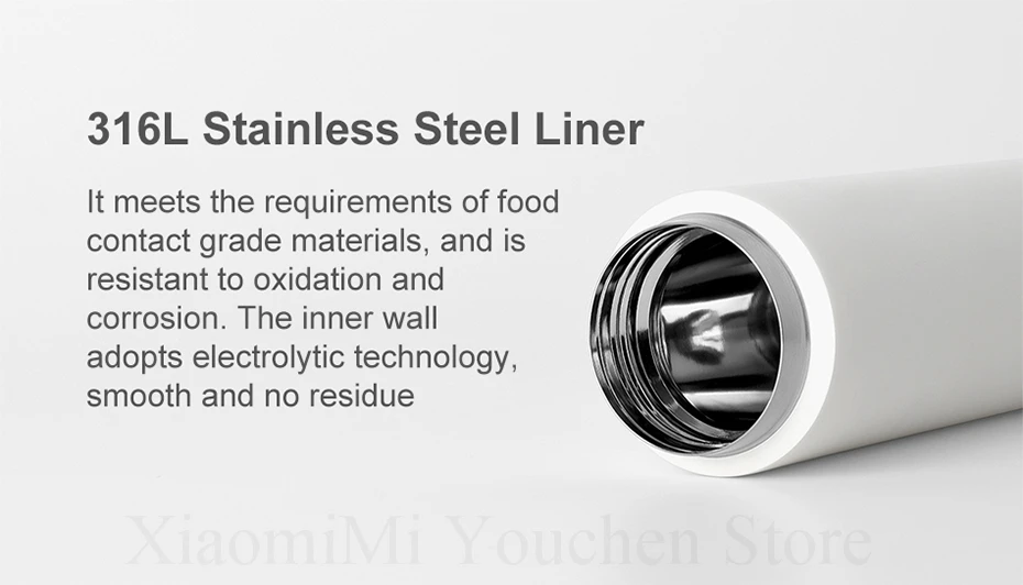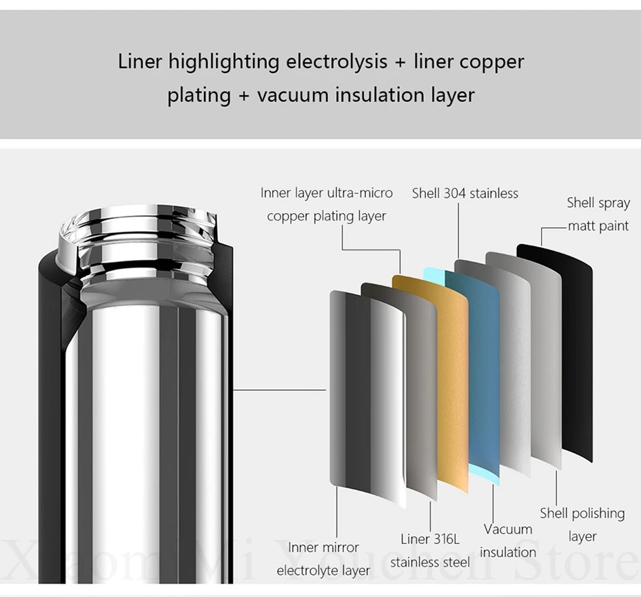 -Двойная Вакуумная насосная + вакуумная боковая медная обшивка Mijia Мини-термос принимает двухслойную вакуумную технологию из нержавеющей стали и вакуумную технологию медного покрытия, которая уменьшает вакуумное излучение, эффективно блокирует температурную проводимость и конвекцию и задерживает рассеивание тепла в чашке. Изоляция и блокировка охлаждения могут быть эффективно выполнены.